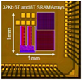 - Dual-Vcc 8T SRAM Array using dynamic level shifting wordline decoder and column based Vcc-mux for wide voltage range applications, VLSI Symposium 2013 (Conference highlight paper)