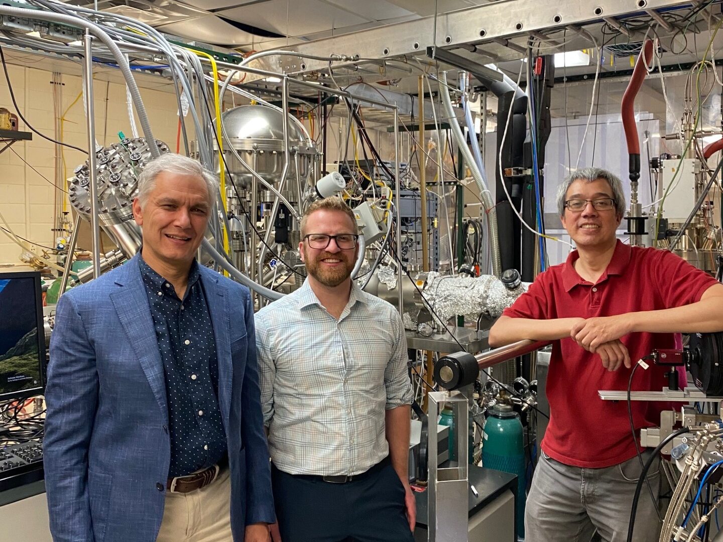 Alex Demkov (left) and Agham Posadas (Right) with the newly minted Dr. Adam Christensen (middle) after Adam’s successful Doctoral Dissertation defense.