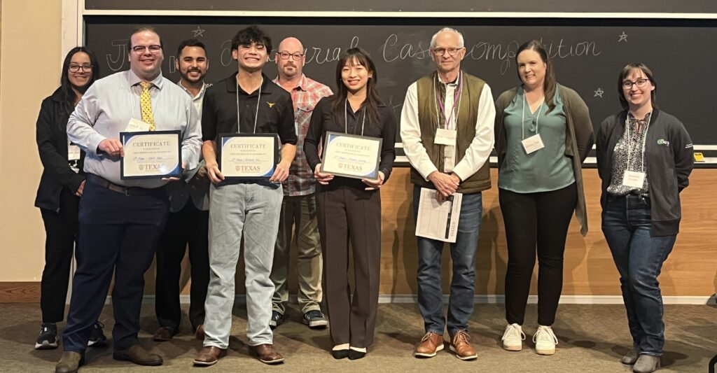 August 29, 2025, Filed Under: Case CompetitionSpring 2025 Case Competition Topic – Insurance Regulation Thanks to our judges!Mike ArendallMonica AvilaMiriam FiskSam MaxamDavid McElroyDavid Reyes 1st Place: Blue TeamClark NeilRichard MaMegan ZhongManu Singhal – Texas A&M (not pictured)Aigerim Atausha – Texas A&M (not pictured) 2nd Place: Purple TeamFe RuizIris QuanKaden SharpDante PeinadoFong-Ying WangMilo Flanagan – Texas State Honorable Mention: Yellow TeamNoah ShapiroAlex SklyarNathan Corbin (UTSA)Ireland Sanchez (UTSA)Isabella Paez Honorable Mention IndividualsVanessa Duong – Texas A&MTanvi Panchumarthy Case Competition Current CompetitionUpcoming CompetitionPast Winners Resources Department of MathematicsCollege of Natural SciencesBe An Actuary American Academy of Actuaries Student Resources