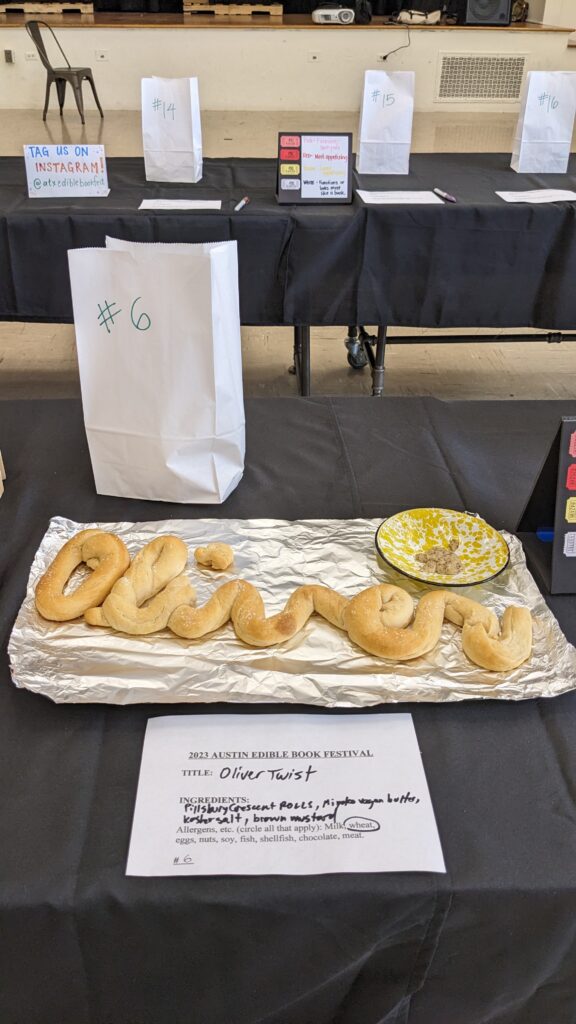 The 21st annual Austin Edible Book Festival is coming up April Fools’ Day weekend, 3/29, noon – 3 PM, at The Baker School. The event features the ultimate fusion cuisine: handmade books you can eat, and often, terrible puns. We’re seeking bibliophiles and bakers alike to: