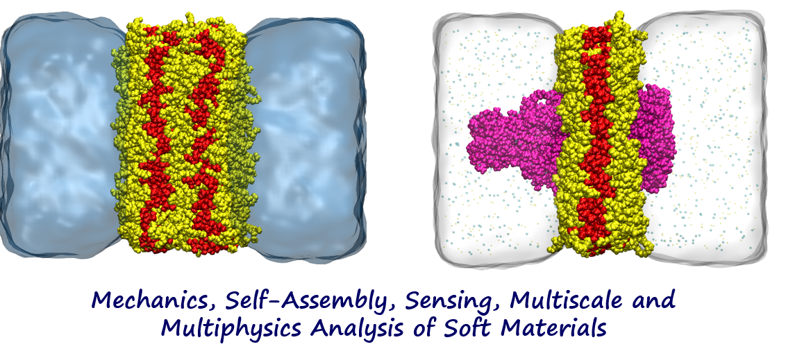 Soft matter Our research in this area focuses on: Droplet-Interface Bilayers Our research on this topic focuses on understanding self-assembly of droplet-interface bilayers (DIBs) their stability and sensing properties. In addition, we also focus on understanding communication between the droplets when ion channels are inserted in the bilayers connecting the two droplets Polymers and Hydrogels Our research on this topic focuses on developing molecular, continuum and multiscale approaches to understand stimuli-responsive behavior of polymers and hydrogels. We are specifically interested in pH, electric field, temperature and biomolecule responsive hydrogels.