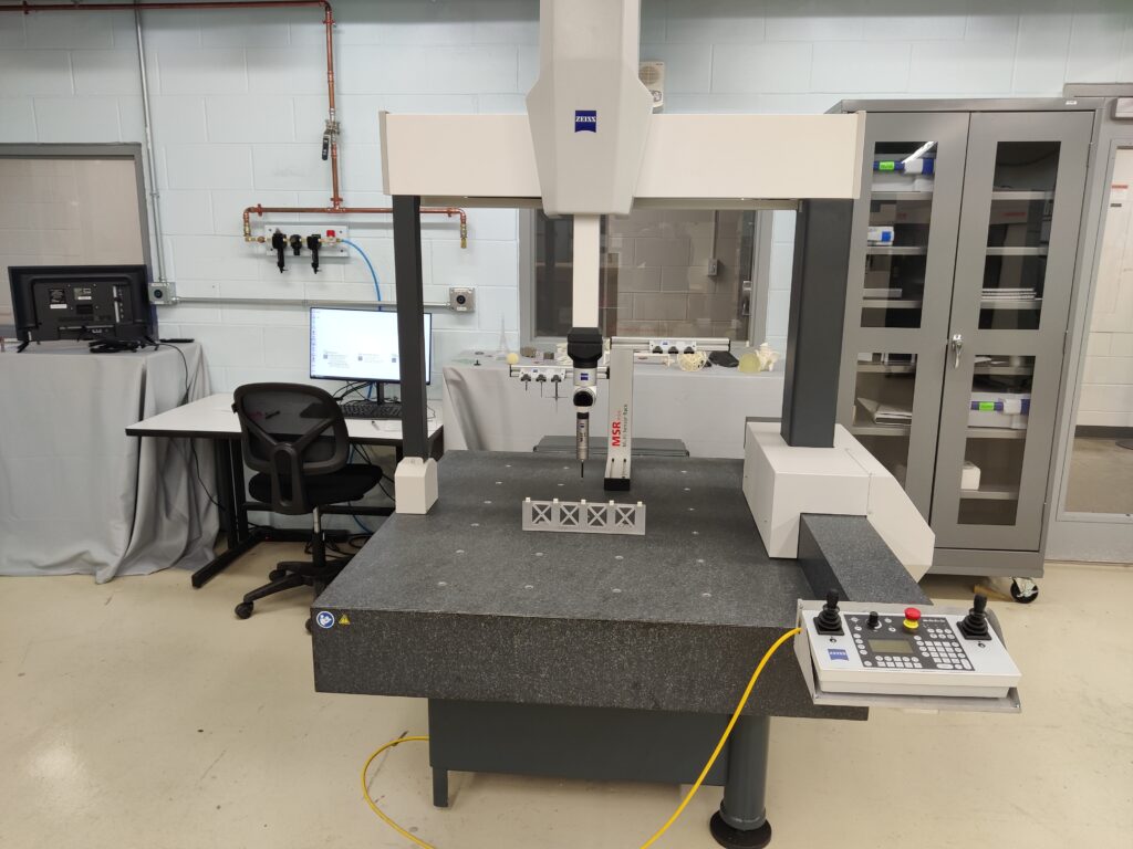 Metrology Lab Geometric Measurement Zeiss Spectrum CMM Contact probe coordinate measuring machine (CMM)700x1000x600 mm (27.5×39.3×23.6 in) measurement volumeArticulating probe for maximum measurement flexibilityFully automated CNC operation mode1.9+L/250 micron resolution Einscan Pro HD 3D Scanner Structured light scanner3,000,000 max points per secondColor scanning capabilityReverse engineering0.2 mm resolution Mechanical Testing MTS Criterion Universal Testing Machine 300 kN capacity load frameTension, compression, and bending testsSpherical seated self-aligning compression platens