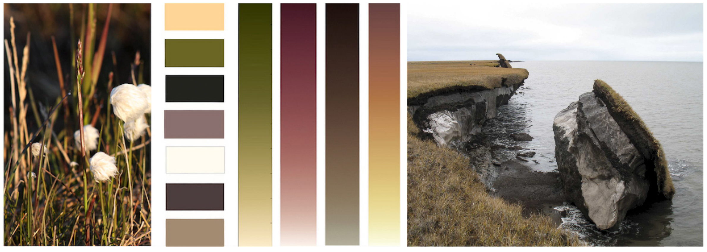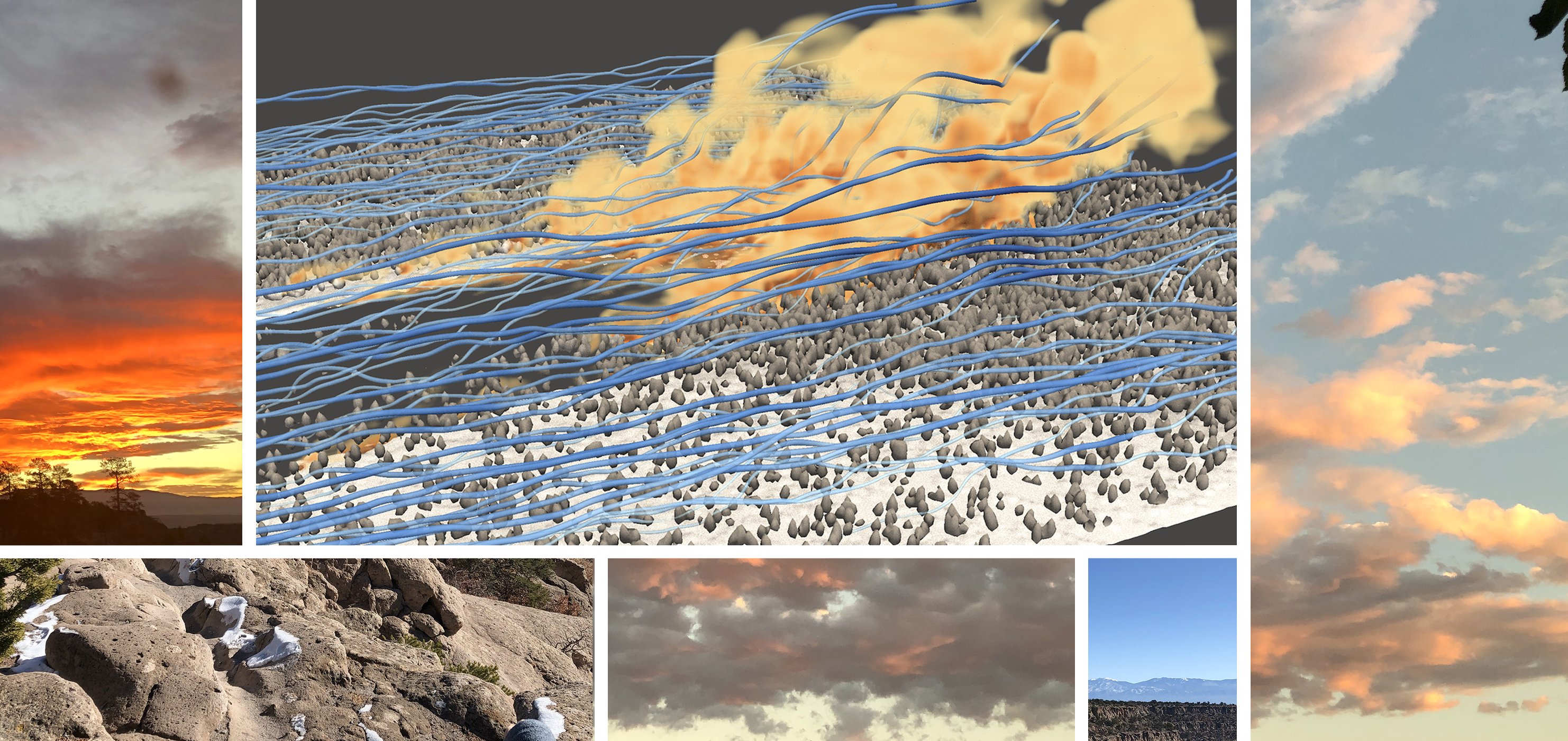 Affective Visualization PROJECT OVERVIEW While significant work has been done in the practical applications of improving the visual vocabularies of scientific visualization, the majority of this work has focused on the perceptual components of visual elements, how they interact, and whether they improve speed or performance in accurately reading data visualizations. However, as data becomes increasingly more complex, layered, multivariate, and especially volumetric and time varying, such perceptual metrics are increasingly difficult to measure, while other, less well-defined variables become more important to consider. We see one of these essential variables as Affect: the holistic emotional impact that an image or visualization produces in a viewer. Much has been done to investigate how we might quantify the effects of Affect, particularly in advertising, the arts, and communication. This research thrust focuses on how we might operationalize Affect theory from the arts to improve environmental visualization through form, texture, and color relationships. How do these relationships evolve over time? How do they influence the preconceived notions different audiences form about a visualization? How can affective relationships between visualization components improve analysis capability amongst scientists and researchers? These and many more questions form the basis of our work in this area, along with the goal of more closely integrating arts and visualization practice by bringing artists and designers into the process. Natural Color If color is the “first principle of place,” we might ask not only what the net effect of color is on understanding and emotional connection with a data-image, but also what color is doing, what agency it possesses in its ontological encounter with, specifically, the human visual system and its socio-cultural constructs. Parsing the detail and complexity of the world draws on evolved traits of our visual systems: top-down and bottom-up attentional processing, strategic visual grouping, exploration, value assignment, and hierarchical determinants. As many of these tasks rely on color, we’re able to perceive minute differences in natural hues, especially green. Pine needles, prairie grasses, mesquite bushes, cacti, moss, juniper trees: each reflect distinct shades of green which vary drastically, even within the same plant. Primary hues are much less common in nature than secondary or tertiary hues, and are employed sparingly by flora and fauna alike to contrast with a largely analogous backdrop and to signal danger, spread seeds, or attract a mate or pollinator. When disembodied and decontextualized from their sources, do these myriad greens continue to index their botanical origins? Devoid of form, do they possess the same agency, retrieve the same memories, produce the same sense of Place? Decoding a scientific visualization, or any other kind of information-dense visual scene, draws on the same color-based evolved capabilities to accomplish similar analysis and decision-making tasks. Color contributes to the experience of the image; another datapoint that provides information and subtext for the “text” of the visualization, producing a set of relationships specific to that image. By appropriating the earth’s palette, we might strategically leverage our innate sense-making operations to compose richer, more effective, and less cacophonous visualizations—a fruitful avenue which remains untapped thus far in both scientific and geographic communities. Here, We draw from both the natural world and artistic color theory to present: 1) a new color system, designed to establish an affective connection between big environmental data and its original source material, 2) a tool for extracting these workable palettes from natural imagery, and 3) a selection of pre-made linear colormaps and discrete color sets drawn from natural environments. ASSOCIATED PUBLISHED ARTICLES Art, Affect and Color: Creating Engaging Expressive Scientific Visualization Affective, Hand-Sculpted Glyph Forms for Engaging and Expressive Scientific Visualization ASSOCIATED VIDEOS