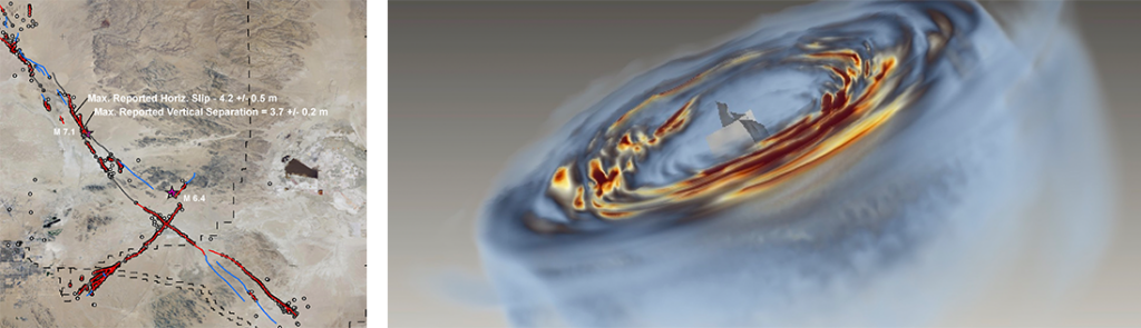 Environmental Visualization As data size increases in size and complexity, visualization must keep pace. Environmental visualization, in particular, often features multivariate, volumetric data, with multiple elements interacting over both time and space. The focus of this research thrust is to improve visualization of environmental simulation data, as shown in the examples above, to improve research in analysis and communication of environmental phenomena and earth systems processes. This work has extended over a multiplicity of subjects, including the Arctic, Antarctic, Gulf of Mexico, and wildfire in New Mexico. Click on the projects below to learn more about each individual section of work, and how we are working to improve visualization through innovative techniques anchored in the arts. PROJECTS Ice, Sediment and Earth’s History …. a collaboration with the TERMINUS scientists Benjamin Keisling and Ginny Catania, UTIG, UT Austin. Bridging a scientific exploration of Greenland’s past with an immersive multimedia content providing an entry point into the curiosities and complexities of our changing planet, TACC’s Visualization Lab displays a series of intertwining content from the collaboration on the Lab’s large monitor display. More content from this collaboration can be found here. The Arctic The Arctic environment is an increasingly intensive site of study for climate researchers across the globe. Rapid anthropogenic warming is causing the Arctic’s seasonal freezing to fluctuate, rapidly melting critical, carbon-sequestering permafrost, land ice, and sea ice. In order to better understand these processes and how the Arctic environment will continue to change in the near and far future, scientists are turning to high-fidelity, small-scale models of earth systems physics Antarctic As rapid climate change begins to affect the Earth’s polar regions, scientists are studying the intricacies of ocean, atmosphere, and polar ice to understand how increasing temperatures will affect sea level rise and coastal communities in the coming century. One area of particular interest for a team at Los Alamos National Laboratory (LANL) is Antarctica’s Filchner-Ronne Ice Shelf. Sub-projects within this project include modeling and visualizing Antarctic polynyas and water masses beneath the Filchner-Ronne Ice Shelf. Gulf of Mexico Biogeochemistry We work in close collaboration with climate modelers at Los Alamos National Laboratory on a number of projects. One such ongoing project studies the biogeochemistry of the Gulf of Mexico in order to determine where algal blooms have occurred in the past and may occur in the future as the climate rapidly shifts. 2019 Ridgecrest Earthquakes Scripps Oceanography seismologist Alice Gabriel, led a study focused on the relationship between the two big earthquakes of the July 4, 2019 Ridgecrest earthquake, a magnitude 6.4. earthquake which occurred along a multi-fault system in order to understanding the dynamics of multi-fault ruptures because these types of earthquakes are typically more powerful than those that occur on a single fault. For more details see: Dynamics, interactions and delays of the 2019 Ridgecrest rupture sequence published in Nature, DOI: 10.1038/s41586-023-05985. Wildfire Fire scientists at Los Alamos National Laboratory (LANL) and their partners have developed models that can help firefighters understand fire conditions, behaviors, and likely outcomes in terms of both risk and hazard in real time. These models are extremely complex, as they must amalgamate statistical, empirical, and physical information from numerous sources in order to provide accurate or close-to-accurate simulations of diverse types of wildfire in diverse scenarios and under a range of terrain and weather conditions. We are working with these scientists to develop better visualization methods for LANL’s FIRETEC model simulations. These visualization methods focus on allowing scientists to see many variables overlapping and occupying the same digital, three-dimensional space, and how they interact overtime. Sub-projects include both affective color and physicalization for LANL fire simulations. ASSOCIATED VIDEOS Cultivating Macroalgae for Biofuel Polynyas: Polar Physics Revealed through Visualization of the E3SM Global Climate Model Visualizing Ocean Biogeochemistry in the Gulf of Mexico Coupled E3SM Arctic: Ocean, Sea Ice and Air Interactions Extracting Palettes from Nature to Enrich Geoscience Visualizations SC 18: The First Water in the Universe Modeling Ocean Currents, Understanding Climate Change ASSOCIATED PUBLICATIONS Colormaps that improve perception of high-resolution ocean data Environmental Visualization: Moving Beyond the Rainbows Intuitive colormaps for environmental visualization Colormapping resources and strategies for organized intuitive environmental visualization