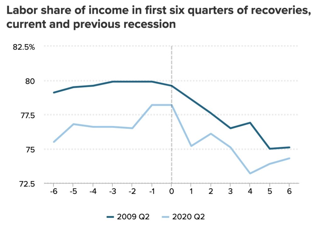 However, amid record profits, a fundamental shift occurred in the second quarter of 2020. Between Q2 2020 and Q4 2021, corporate profits accounted for 53.9% of the total increase in prices. The share attributable to nonlabor input costs and unit labor costs dropped to 38.3% and 7.9%, respectively.