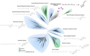 Eukaryotic membranes have polycyclic triterpenoids (mainly sterols) that are essential for a variety of cellular functions, but these have not been seen in archaea. So we searched for them in Asgard archaea, this revealed biosynthetic pathways for them.