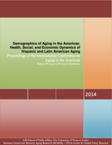2014 Demographics of Aging in the Americas: Health, Social, and Economic Dynamics of Hispanic and Latin American Aging The 2014 International Conference on Aging in the Americas (ICAA) is the seventh installment of the Conference on Aging in the Americas series. The purpose is to discuss the social and economic demography of Latino integration and Hispanic aging, migration, and immigrant adaptation. The works presented in the conference will deal with the dynamics of health and aging among Latinos in the United States and Mexicans in Mexico, as well as its social and economic correlates. The meeting will also serve as a springboard of discussion on how migration stems from and affects the health, social, and economic dynamics of aging on both sides of the border, and how aging relates to immigrant adaptation and Latino integration/assimilation processes. Program/Schedule The preliminary conference program is available here. Highlights A PDF of the 2014 ICAA highlights is available here. Proceedings A PDF of the 2014 ICAA Proceedings is available here. Annual Report The 2014 ICAA Annual Report is available here. Video The 2014 ICAA Presentation Videos are available here. Workshop A PDF of the 2014 Workshop is available here.
