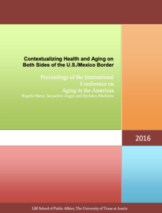 2016 Contextualizing Health and Aging on Both Sides of the U.S./Mexico Border September 14-16, 2016 The University of Texas at San Antonio Simulcast at The University of Texas at Austin The United States and Mexico are growing old; although, because of its relatively young population, Mexico will remain younger than the United States for some time. In the U.S., older Latinos will account for a large share of the total older population in the southwestern United States and the country at large as aging Baby Boomers begin to turn 65. The rapidly aging populations of Mexico and the United States will remain heterogeneous in terms of many social and demographic factors, including their urban and rural distributions. This heterogeneity calls for comparative analyses of the community as an important context in understanding how characteristics of physical, social, and economic environments gives rise to disparities in Latino health in older adults. For this reason, the 2016 ICAA meeting will focus on the influences of social and economic contexts on healthful aging in Latino communities across the U.S./Mexico border in cities and towns such as Harlingen, Texas, Las Cruces, New Mexico, San Diego, California, and Chicago, Illinois. Key thematic areas encompass the ways in which Latino aging is affected by different contexts and places, including rural, periurban (between the suburbs and the countryside), and urban areas in these regions. Papers will employ different methodologies to address cross-cutting issues related to immigration processes, family and household structure, and macroeconomic changes on the quality of community life. At the microscopic level, several papers will pay close attention to the new realities of aging in Latino families in local places. In Texas, Latinos are growing rapidly older and as a result the City of Austin by example became a WHO designated age-friendly community in 2013. Another panel spotlights the role of local communities in developing affordable senior housing and supportive services, such as the Program of All-Inclusive Care for the Elderly in Texas localities and other places in the Southwest. The ultimate objective is to offer new insights on the consequences of the impending growth and impact of the older segment of aging communities on local economies. Flyer and Call for Abstracts The 2016 Flyer and Call for abstracts are available here. Highlights To view the 2016 ICAA Highlights, click here. Proceedings A PDF of the 2016 ICAA Proceedings is available here. Presentations A PDF of the 2016 ICAA Presentations is available here. 2016 ICAA Organizers: Jacqueline Angel, The University of Texas at Austin, jangel@austin.utexas.edu Kyriakos Markides, The University of Texas Medical Branch at Galveston, kmarkide@utmb.edu Rogelio Saenz, The University of Texas at San Antonio, rogelio.saenz@utsa.edu