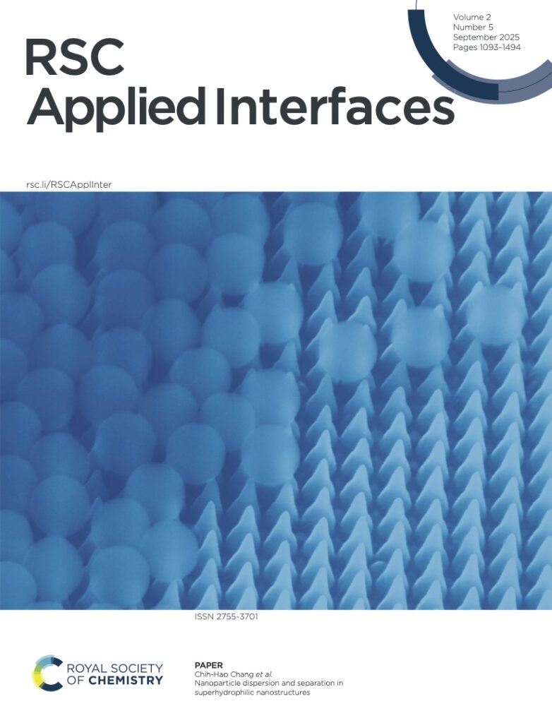 Andrew’s Paper Featured as Front Cover Article Posted on 09/16/2025 by Chih-Hao Chang Andrew’s paper has been featured as the front cover of RSC Applied Interfaces. Congratulations!