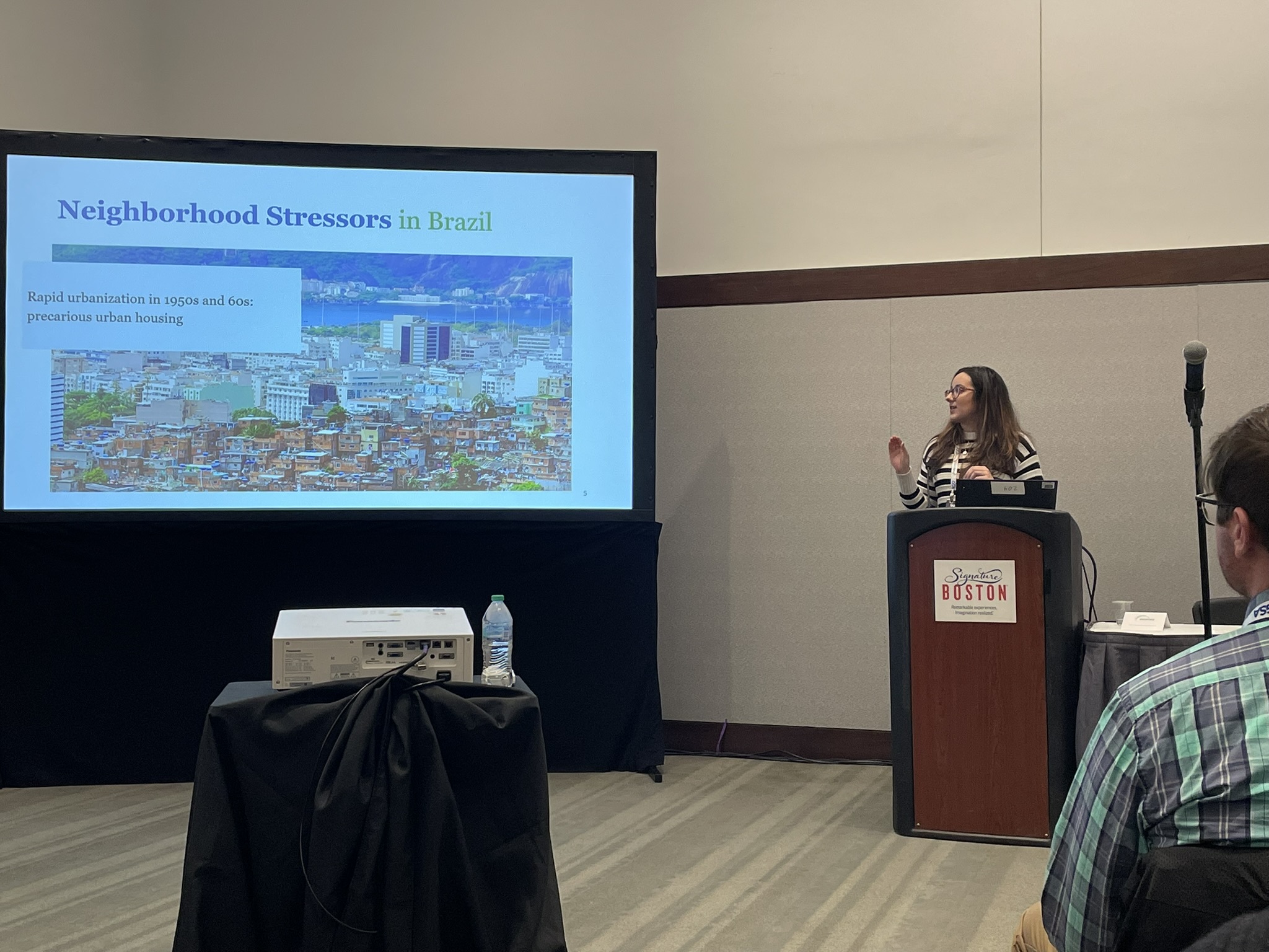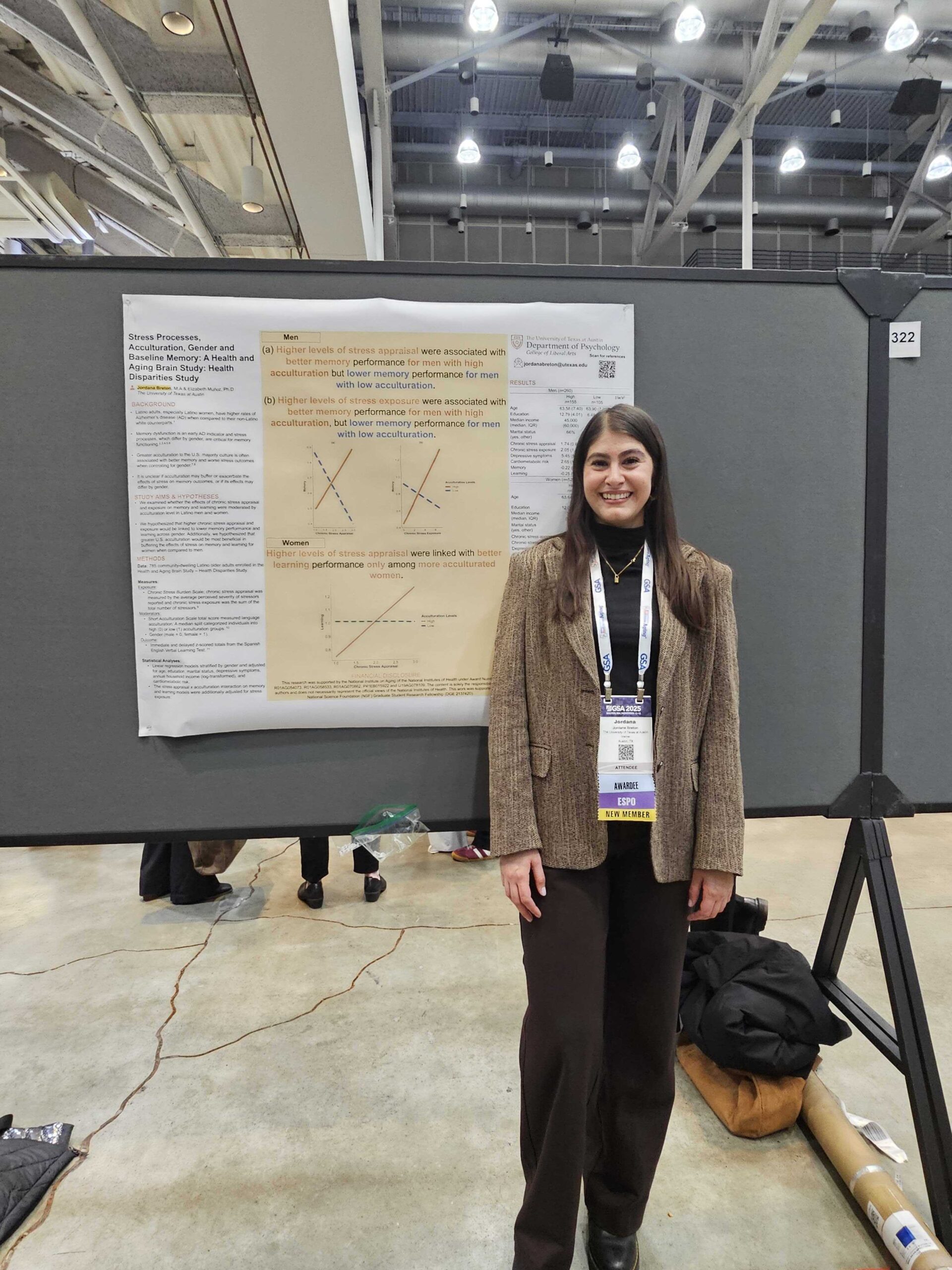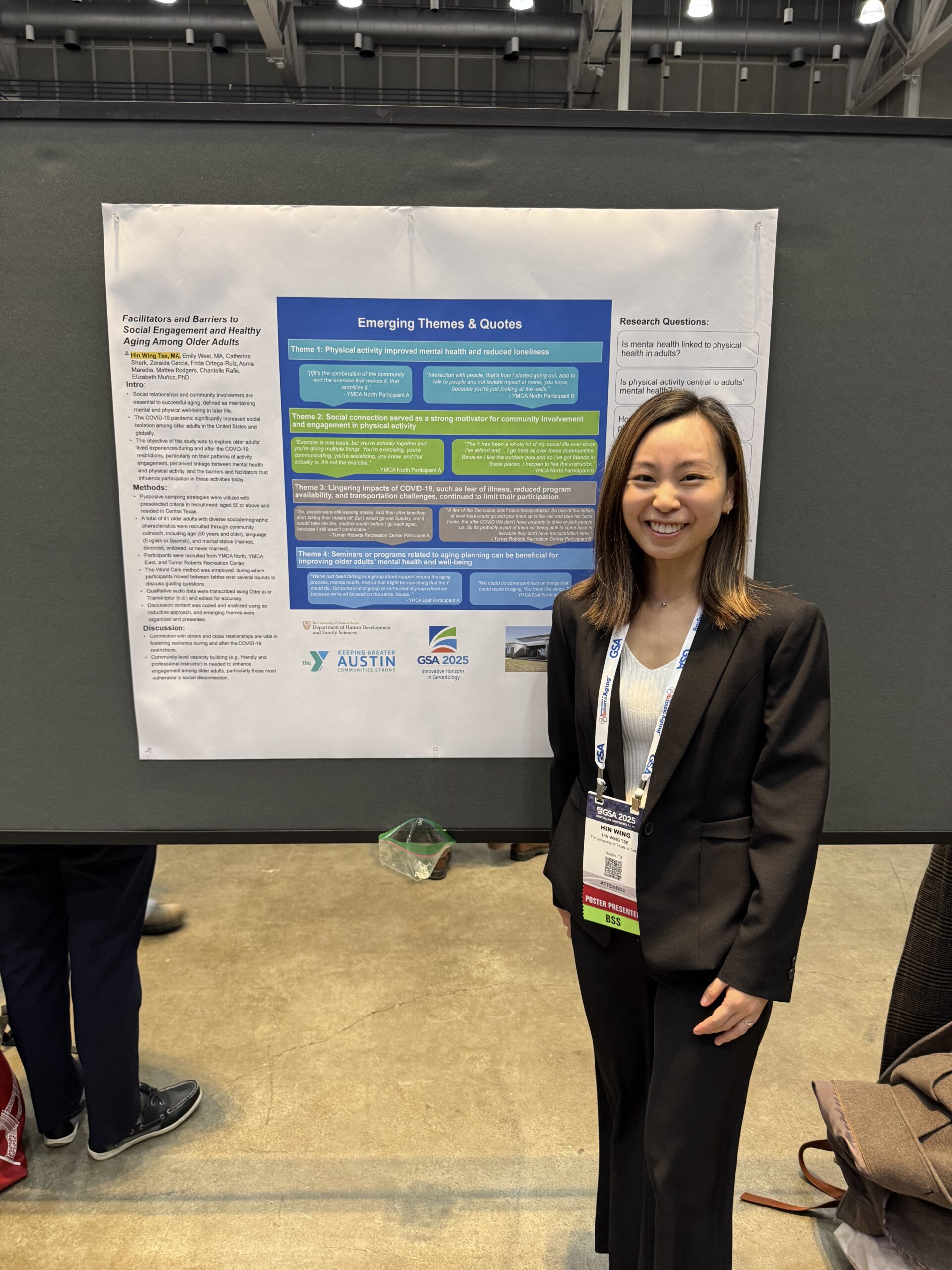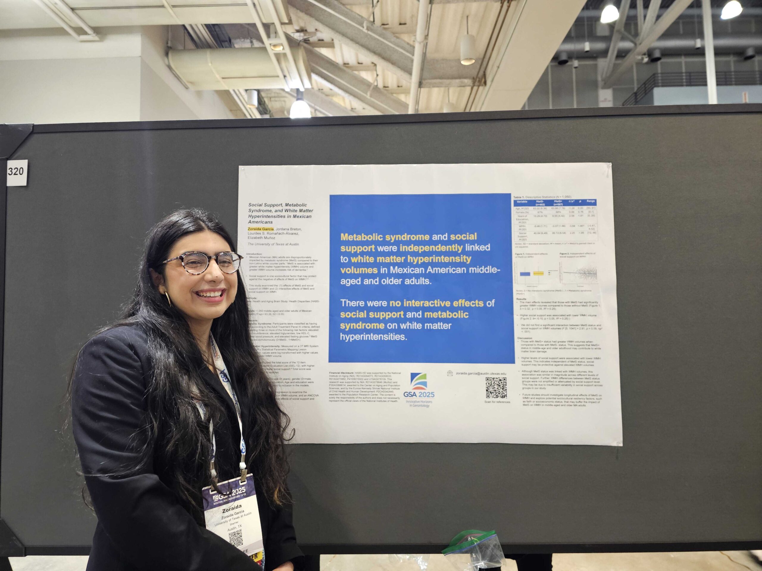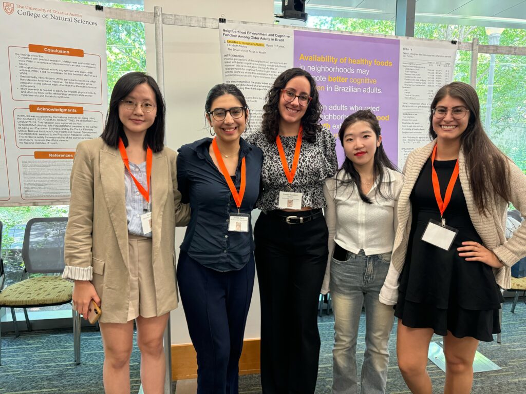 News & Events 11/25 – CHART at GSA 2025 CHART members presented their research at the 2025 Gerontological Society of America Annual Scientific Meeting in Boston, MA. They shared new findings on neighborhood environments, stress processes, cognitive aging, social engagement, and brain health across diverse populations. 9/22/25 – Jordana Breton Receives Hispanic Neuropsychological Society Student Research Award Congratulations to CHART Lab graduate student Jordana Breton on receiving the Hispanic Neuropsychological Society’s Student Research Award, which provides support for cross-cultural research, Spanish language testing, and conference travel. 8/27/25 – CHART Lab Graduate Students Recognized by the Gerontological Society of America Congratulations to CHART Lab graduate students Jordana Breton and Hyun Moon on receiving multiple awards from the Gerontological Society of America, including ESPO Poster Awards and Student Travel Stipends, in recognition of their outstanding research! 7/23/25 – Congratulations, Dr. Jean Choi! Congratulations to Dr. Jean Choi who successfully defended her doctoral dissertation entitled “Life Course Stress Exposure and Cognitive Function: The Roles of Chronic Inflammation and Neighborhood Context.“. 4/27/25 – New Publication by Lourdes Romañach Congratulations to Lourdes on her first-authored publication entitled “Neighborhood Social and Physical Environment and Cognitive Function among Brazilian Adults Aged 50+”. See the online publication here 5/10/2025 Congratulations Class of 2025! Congratulations to undergraduate research assistants Brianna Phan (B.S.A.), Dottie Trevino (B.S.A.), Bella Fayad (B.S.), Asma Maredia (B.S.), and Isabelle Vivas (B.S.) who graduated with their Bachelor’s degree in HDFS! 5/9/25 – Asma Maredia named Dean’s Honored Graduate! Congratulations to CHART member Asma Maredia who will graduate with the highest honor from UT Austin’s College of Natural Sciences. You can read more about this award here. 4/30/25 – Bella, Asma, and Isabelle present honors theses Congratulations to undergraduate students, Bella Fayad, Asma Maredia, and Isabelle Vivas for successfully completing and presenting their honors theses. “Examining the Effects of Educational Attainment, Perceived Stress, and Acculturation on Hippocampal Volume in Mexican American Adults” by Bella Fayad “Under Pressure: The Role of Race in the Stress-Thyroid Disease Connection” by Asma Maredia “Acculturation, Time in the U.S., and Cardiovascular Disease Risk: Understanding Health Outcomes Among Older Mexican American Adults” by Isabelle Vivas 4/16/25 – Congratulations Lourdes Romañach! Congratulations to Lourdes Romañach for being awarded an NICHD Ruth L. Kirschstein National Research Service Award – Pre-Doctoral Training Fellowship from UT Austin’s Population Research Center! Read more about this opportunity here. Texas Alzheimer’s Research and Care Consortium (TARCC) Scientific Symposium Jordana Breton presented at the TARCC Scientific Symposium! Her poster was entitled “Acculturation moderates the relationship between stress appraisal and memory: Results from the Health and Aging Brain Study-Health Disparities Study (HABS-HD).” CHART at the Gerontological Society of America’s 2024 Annual Scientific Meeting CHART traveled to Seattle to attend GSA’s 2024 Annual Scientific Meeting. Jean Choi, M.A. presented her talk entitled “Cumulative Stress Exposure, Neighborhood Environments, and Inflammation” and Lourdes Romañach Álvarez presented her poster entitled “Neighborhood Environment and Cognitive Function Among Older Adults in Brazil.” CHART at 2024 ICAA CHART was well-represented at the 2024 International Conference on Aging in the Americas (ICAA). Congratulations to Zoe Garcia and Lourdes Romañach Álvarez on their poster presentations, and to Jean Choi on her Lighting Talk presentation! You can find a copy of the conference program here. (Pictured from left to right: Jean, Zoe, Lourdes, Hyun, Jordana) 8/29/24 – 8/30/24 Identifying Midlife Social Exposures that Might Modify Risk for Cognitive Impairment Associated with Early Life Disadvantage Dr. Muñoz will present at an upcoming two-day public workshop at the National Academies of Sciences, Engineering, and Medicine to discuss the state of knowledge and identify conceptual approaches to guide research on better understanding midlife exposures that may be modifiable in reducing the risk of later-life dementia. This workshop is being supported by the National Institute on Aging. You can register for in-person or virtual attendance here: https://www.nationalacademies.org/event/43209_08-2024_identifying-midlife-social-exposures-that-might-modify-risk-for-cognitive-impairment-associated-with-early-life-disadvantage 7/26/24 Congratulations Jean Choi! Jean Choi who was selected to participate in the Comparative Life Course Methods Workshop sponsored by the National Institute on Aging. This is a competitive opportunity for mentorship and training in Best Practices of Comparative Life Course Research, using large-scale cohort studies from around the world. Congratulations! 6/4/24 Dr. Muñoz selected as Fellow of the Gerontological Society of America Fellow status is peer recognition for outstanding contributions to the field of gerontology and represents the highest category of membership. You can read the announcement here. 4/19/24 Brianna Phan presents research project Research assistant, Brianna Phan, presented her research at the CNS Undergraduate Research Forum. Her poster was titled “Examining the link between stress and cardiovascular disease in relation to maladaptive coping behaviors and socioeconomic status”. Congratulations, Brianna! Community Engagement CHART partners with local no-profits to provide health promotion resources to the Austin adult community on a bi-weekly or monthly basis. Check out this picture of some of us at Del Valle High School in 