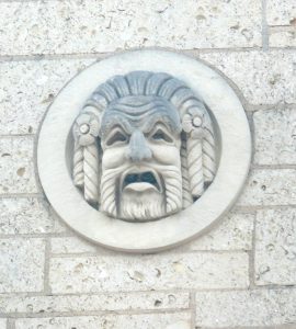 A ‘satyr’ was the term for a mythical creature associated with Dionysus. It was also the term used for a short burlesque play performed after a series of three tragic plays. The satyr play kept with the general theme of the three tragedies by poking fun at the plight of the characters in the series of tragedies. In keeping with the uncivilized nature of the mythical creature also called a satyr, actors in these plays were described as wearing large phalli to create a comic effect. The fact that the Hogg Auditorium has included the face of a satyr is highly unusual since most modern theaters only depict the Greek dramatic masks for comedy and tragedy when paying homage to their classical foundations.