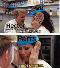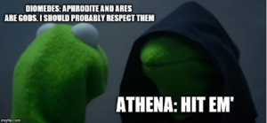 The original idea for this page came from Mira Bhat, who suggested to me that memes would be a fun way of thinking about Greek and Roman myths. The following Epic Mythomemologies present a meme for each of the books in an epic poem. They were written by undergraduates who were taking classical mythology at UT.
