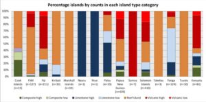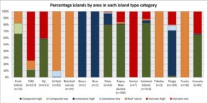 While there may be demographic, development, and economic factors that present disaster risks to Oceania states, the primary sources of disaster risk, particularly those resulting from climate change, stem from the geological foundations that make up tiny land masses these states call home. Island formations in Oceania can broadly be characterized into three types: high islands, low islands, and continental islands. Yet contrary to how they sound, these terms do not correlate to the height or elevation of an island but are instead used to express differences in island geology. This post will baseline general island geological types and provide a few brief examples of disaster considerations.
