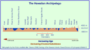 Figure 3. Cross Section of the Hawaiian Archipelago depicting the relationship of time and island weathering.