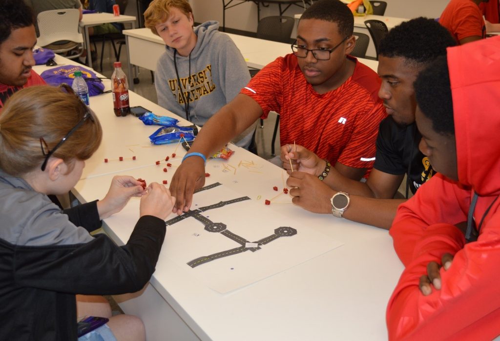 August 14, 2018, Filed Under: UncategorizedCM2 Funded Researchers at Louisiana State University Organize Transportation Engineering Summer Camp Dr. Brian Wolshon, professor and Director of the Center for Emergency Transportation and Evacuation Resiliency at Louisiana State University (LSU) and member of the Cooperative Mobility for Competitive Megaregions (CM2) consortium, has been actively participating in educational and outreach activities with the support of Nelida Herrera, a funded Research Associate at Louisiana State University. Dr. Wolshon and Ms. Herrera have been participating in camps held every summer on the LSU campus in Baton Rouge. These week-long summer camps are organized by the college of engineering to provide an opportunity for faculty and college students to interact with high school students through hands-on workshops and activities. Dr. Wolshon was excited to note that, “the sessions that we host every summer are one of the highlights of our annual calendar of UTC-sponsored activities!” On July 12th, 2018, Ms. Herrera organized a session of hands-on activities for the Recruiting into Engineering High-Ability Multicultural Students (REHAMS) summer camp. This summer camp is offered every year to rising 11th and 12th grade students and provides an opportunity to explore, create, and compete in a variety of engineering and college preparatory activities to encourage interest in STEM. Gabrielle Taylor, an LSU undergraduate student worker supported by CM2, assisted Ms. Herrera during the activity. The activity began with a short presentation and Q&A session about planning and design. The 33 students that attended the session were then divided into six groups. Each group built a city on a piece of white cardboard representing their “city limit”. The students were provided toothpicks and gummies that served as building blocks for houses, schools, grocery stores, hospitals, warehouses, etc. They were also provided paper roads, traffic signs and traffic signals to build a transportation system that would provide accessibility and connectivity. To mimic the realities of urban planning in cities, they were limited by design constraints, time, and resources. For example, students needed to design their cities around hypothetical lakes, rivers, wetlands, underground pipelines, street light poles, and trees. Their structures also needed to support the weight of a book without failing. Students were only provided with a limited number of toothpicks, gummies, paper roads, and paper traffic signs and traffic signals. This showed the importance of budgeting to spend the resources as effectively as possible and encouraged students to think about ways to make limited resources work. Ms. Herrera indicated that, “students are always asking for more materials. I tell them that the amount they received is what was within their hypothetical budget. This sparks their creativity by thinking about ways to do the most they could with what they have available.” Once the teams finished building their cities, these were connected to create what would resemble a parish, region, state, or even a megaregion. At the end of the session, the students were proud to present their cities. Ms. Herrera noted that “the students were engaged throughout the session as they planned, built, and connected their cities!” Programs like this are supported by technology transfer initiatives of the UTC grant. Dr. Wolshon shared that, “USDOT UTC support gives us the opportunity to reach out to local youth in the Baton Rouge, Louisiana region. It is truly an honor and a privilege for both Nelida and I to encourage the development of the next generation of transportation engineers and planners. We hope that our work will ignite a passion for the field and, hopefully one day, even inspire some of them to pursue a career in transportation engineering – or other STEM fields.” This news article was written by Nelida Herrera, a Research Associate at Louisiana State University.