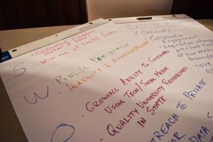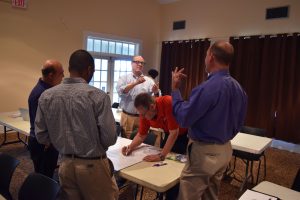 September 19, 2018, Filed Under: UncategorizedTexas Southern University 290 Corridor Workshop: Increasing Travel in Vulnerable Communities On September 7th, CM2 (Cooperative Mobility for Competitive Megaregion) Texas Southern University (TSU) researchers sponsored a full-day workshop in Round Top, TX with stakeholders from along the 290 Corridor to discuss increasing travel options for vulnerable communities in the Texas Triangle megaregion. Workshop participants included representatives from Brazos Valley Council of Governments, Bryan/College Station Metropolitan Planning Organization, Houston-Galveston Area Council, Harris County Rides, Capital Area Rural Transportation System (CARTS), and the Texas Central Bullet Train. The workshop began with CM2’s Assistant Director for Research, Lisa Loftus-Otway, describing CM2’s purpose and introducing attendees to its member institutions. Dr. Carol Lewis, Professor and Emeritus Director of the Center for Transportation, Training, and Research (CTTR), and Dr. Gwendolyn Goodwin, Assistant Professor and Interim Director with CTTR, at TSU focused their Year-1 CM2 funded project along the 290 corridor that connects Houston and Austin. As a part of their project, “Creating a Framework to Determine Purpose and Need for Increased Travel Options in the Megaregion for Vulnerable (Environmental Justice) Communities”, they have been gathering data to define transportation gaps in non-urban areas. Dr. Gwendolyn Goodwin, Lisa Loftus-Otway, and Dr. Carol Lewis Purpose and need for transportation funding are typically defined by some level of congestion or lack of safety. But how should decision makers quantify transportation needs in non-urban areas where congestion is not necessarily an issue? For vulnerable communities in rural areas, factors such as cost, accessibility, and lack of internet/web access will continue to be barriers for transportation. As Dr. Lewis put it, “it is difficult to prove purpose and need when the need is simply that people need to get around.” Dr. Carol Lewis discussing her CM2 research To address this issue, Dr. Lewis and Dr. Goodwin are creating a rubric style tool to allow smaller, vulnerable communities to have a greater chance of receiving federal funding. Having this type of data will allow both academics and professionals in the industry to layer transportation options to address gaps in megaregional corridors. At the workshop, Lisa Loftus-Otway also presented her research project, “Issues in Setting an MPO Process for Megaregion and Multi-Jurisdiction Planning in the Texas Triangle”. Ms. Loftus-Otway’s research maps out MPO planning processes and operating procedures to see where discrepancies may lie within the Texas Triangle megaregion. It also provides recommendations to enable MPOs to plan transportation investments on a megaregion scale, such as formalizing a megaregional planning focus between the MPOs and TxDOT during the next execution of planning agreements and using a megaregional framework to prioritize projects within the Metropolitan Transportation Plan. Breakout group discussing strengths, weaknesses, opportunities, and a call to action Lack of rural transit options is a serious public health issue. As Dan Rudge from the Bryan/College Station Metropolitan Planning Organization pointed out, living far from medical care creates a number of problems. Not only does it hinder proper care but it also means that vulnerable individuals are paying the highest price for transportation to travel home when they are discharged. Increasing rural transit options could mean the difference between life and death for many vulnerable individuals. As Robert Anders of Harris County Rides explained, “[in the transportation industry] we may not save lives, but we take people to where they save lives.” Dave Marsh discussing the CARTS transit system Transit agencies that serve rural areas want to address deficiencies, but can be limited by lack of funding that results from lack of data. As Michael Parks from the Brazos Valley Council of Governments commented, “the funding is simply not there for us to have the capacity we need.” On top of that, transit agencies are also having trouble keeping transit drivers throughout the state. But transit agencies are doing everything they can to serve their communities despite limited resources. As Dave Marsh from CARTS said, “what you have in the rural transit industry is a lot of people who care.” Breakout group discussing strengths, weaknesses, opportunities, and a call to action Of course, the public sector does not need to go it alone. Michael Moore from the Texas Central Bullet Train discussed private sector interest in megaregion transit service. The Texas Central Bullet Train will provide high-speed rail access along the Dallas-Houston corridor. The corridor was chosen as the site of the first private high-speed rail corridor after a study of 97 city pairings, in which the Dallas-Houston pairing came out on top. High-speed rail between Dallas and Houston (including a stop in Brazos Valley) would offer a travel time of less than 90 minutes with departures every 30 minutes during peak periods of the day, offering Texas Triangle residents a convenient and accessible transportation option between these 3 major areas. It’s possible that this project could lead to increased private investment in other inter-city transit options. SWOC Exercise The workshop concluded with a modified SWOT (strengths, weaknesses, opportunities, threats) activity, in which participants divided into groups and discussed SWOC (strengths, weaknesses, opportunities, and a call to action.) The call to action prioritized communicating with elected officials. Because most legislators represent rural areas, they are more responsive if you can tie transit issues to rural issues. Other action steps included outreach to the public sector, ensuring flexibility to move money to match transportation 