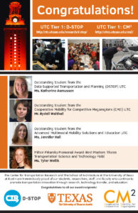 January 23, 2023, Filed Under: UncategorizedCongratulations to Valencia Stewart, 2022/23 CUTC Student of the Year! The Council of University Transportation Centers (CUTC) awards competition recognizes outstanding transportation students, faculty, and leaders for their accomplishments in the field of transportation research and education. Each year, individuals are honored at the Annual CUTC Awards Reception and Banquet. These individuals, who have been nominated by educators from across… read more