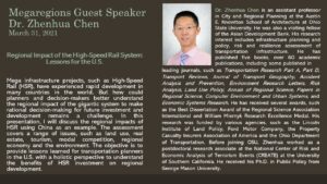 March 4, 2021, Filed Under: EventsCM2 welcomes guest speaker Dr. Zhenhua Chen on March 31st EVENT: CM2 Welcomes Guest Speaker Dr. Zhenhua Chen on March 31st DATE: March 31, 2021 12:30 PM CST GUEST SPEAKER: Dr. Zhenhua Chen, Ohio State University EVENT DETAILS: Dr. Chen will present his work, Regional Impact of the High-Speed Rail System: Lessons for the U.S. in a virtual presentation to… read more