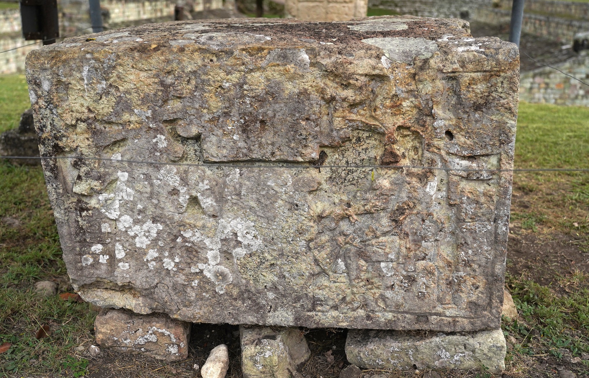 Altar L, created in 822 CE, is perhaps the last piece of art produced at Copán. Altar L was a monument intended to commemorate Ukit Took’, the reigning ruler, who was never officially crowned. Only one side of Altar L was completed. The others are either partially completed, as seen below, or left completely blank, with history yet to be inscribed. Such history never unfolded as the Copán culture collapsed around that time. While artistically insignificant, this altar is remarkable in that it marks the unexpected end of the history of Copán, even though the rulers of Copán had believed in the perpetual continuity of their rule.