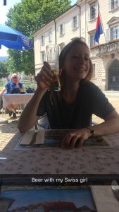 About 45 minutes later, the driver announced that we got to Bellinzona and I left the bus, however I was actually 30 minutes far from the city, by foot. I asked around and took a bus to get to the city where I met my friend. Since we were both strangers, we first started by walking around the city. It was very busy, and many locals had food stands on the streets as if it was Saturday food market. Also, it was the Italian canton, so most locals spoke more Italian than Swiss-German. We walked through the stands and sat at park for a little, then we decided to eat. She really wanted me to try Swiss beer, so we kept looking till we found a restaurant that served good beer and we ate there.