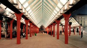 Aulenti’s modern redesign of the building favored the movement of pedestrian behavior and acts as an underground travel rail hub in one of Milan’s main squares. Some key renovations include the added canopies and shelters, which were supported by the eye-catching red columns, to add shelter for pedestrians and to reference the design of 19th-century train stations. In addition, the layout was redesigned to improve foot traffic within the station and incorporate new modes of transportation within the station, which included the metro lines M1 and M2, tram and bus routes, as well as the express railway line.
