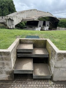 The fifth site that I selected, the Memoriale Brion, is something that I already discussed in my Week 3 blog post. However, I loved this site and visit so much that I couldn’t leave it out of my overall in review. I first studied the tomb in class and was intrigued by its shape and design, but I was still completely unprepared for how it felt in person. The curve of upper section swoops over the two tombs, granting a protective feeling similar to that of a wing or a mound. As a visitor to the site, the spatial layout of the memorial welcomed me in, demonstrating that it was alright to walk around and explore. Everywhere that I looked, there were hidden details of design: gold accents, interlocking circles, beautiful tiling, and geometric edges.
