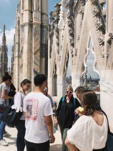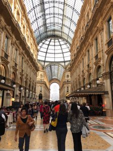Milan itself is an interesting city. All the women were very fashionable, and the men in navy suits were not limited to the downtown area, but instead throughout the whole city. This is all minus the horrible popped collars that both men and women seem to think is a good idea. I knew going in to the program that Milan is one of the fashion capitals of the world but the fashion is definitely… different. The amount of Zaras and H&Ms honestly kind of shocked me, not to mention the addition of some new fast fashion brands to my vocabulary (Bershka and Pull&Bear) . How could a city so forward thinking in design, still be limited to such fast fashion brands? Analyzing this, I realized that the US is not much different. Go to any major city and you’ll see the same stores lining the crowded downtown area. I feel as though these cities that hold the power of being fashion capitals should definitely at least try to be more involved stopping bad practices in the fashion industry. Are we all just high on the buzz of finding a great sale or is the aura of the Duomo so alluring that it blinds us of the realities of cheap/low quality fashion?