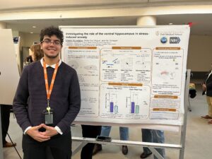 Alyssa presented our latest work in a poster titled, “Investigating the effect of chronic stress on parvalbumin-positive interneurons in the ventral hippocampus.” While still preliminary, our results suggest that chronic stress influences the function of PV interneurons.