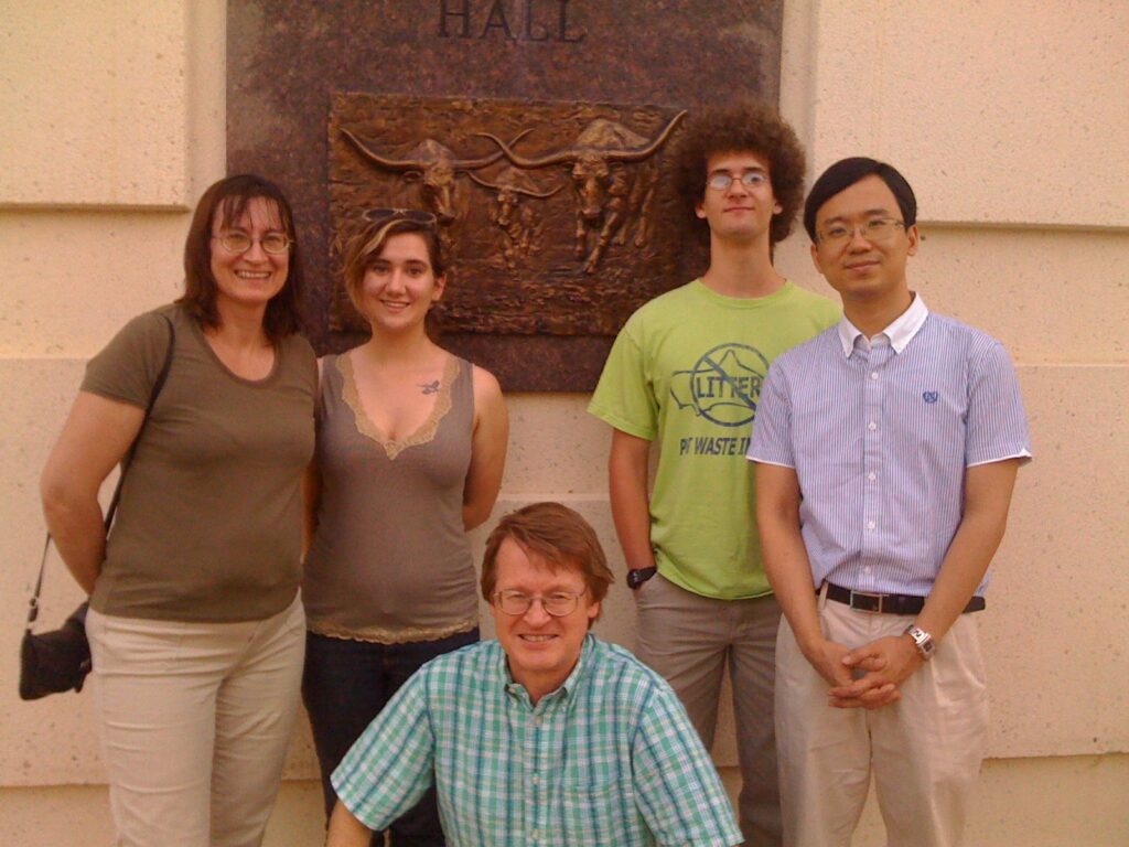 Glenn Focht’s family (wife Corinne Darvennes, left; daughter Angeline and son Cyril) with inaugural 2010-2011 Focht Fellow Woosuk Bang, right, and Prof. Mike Downer, front, in 2011.