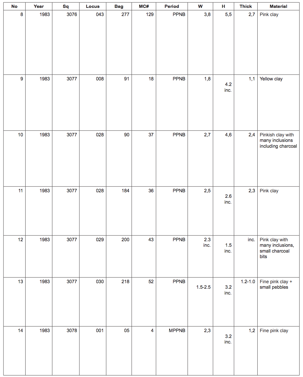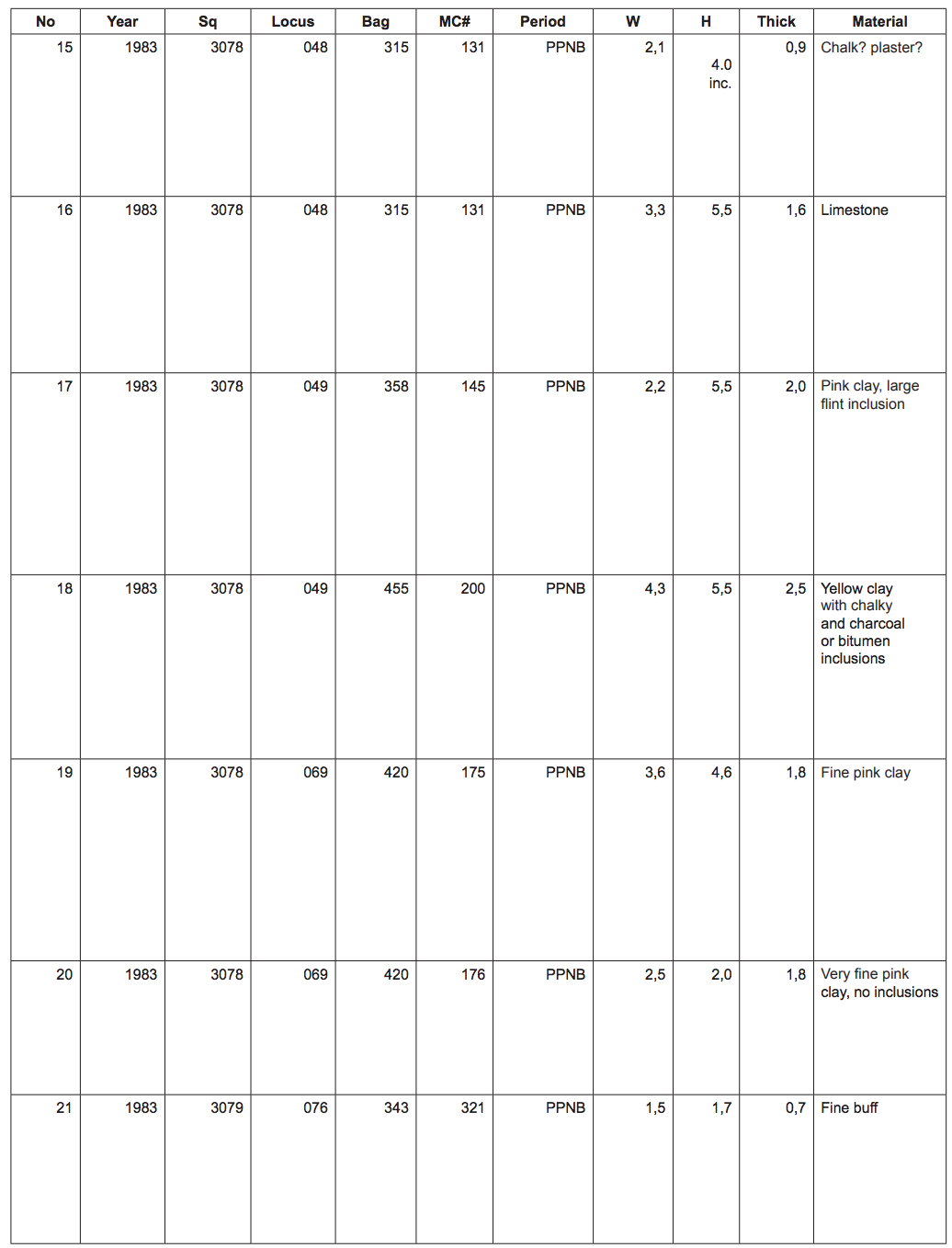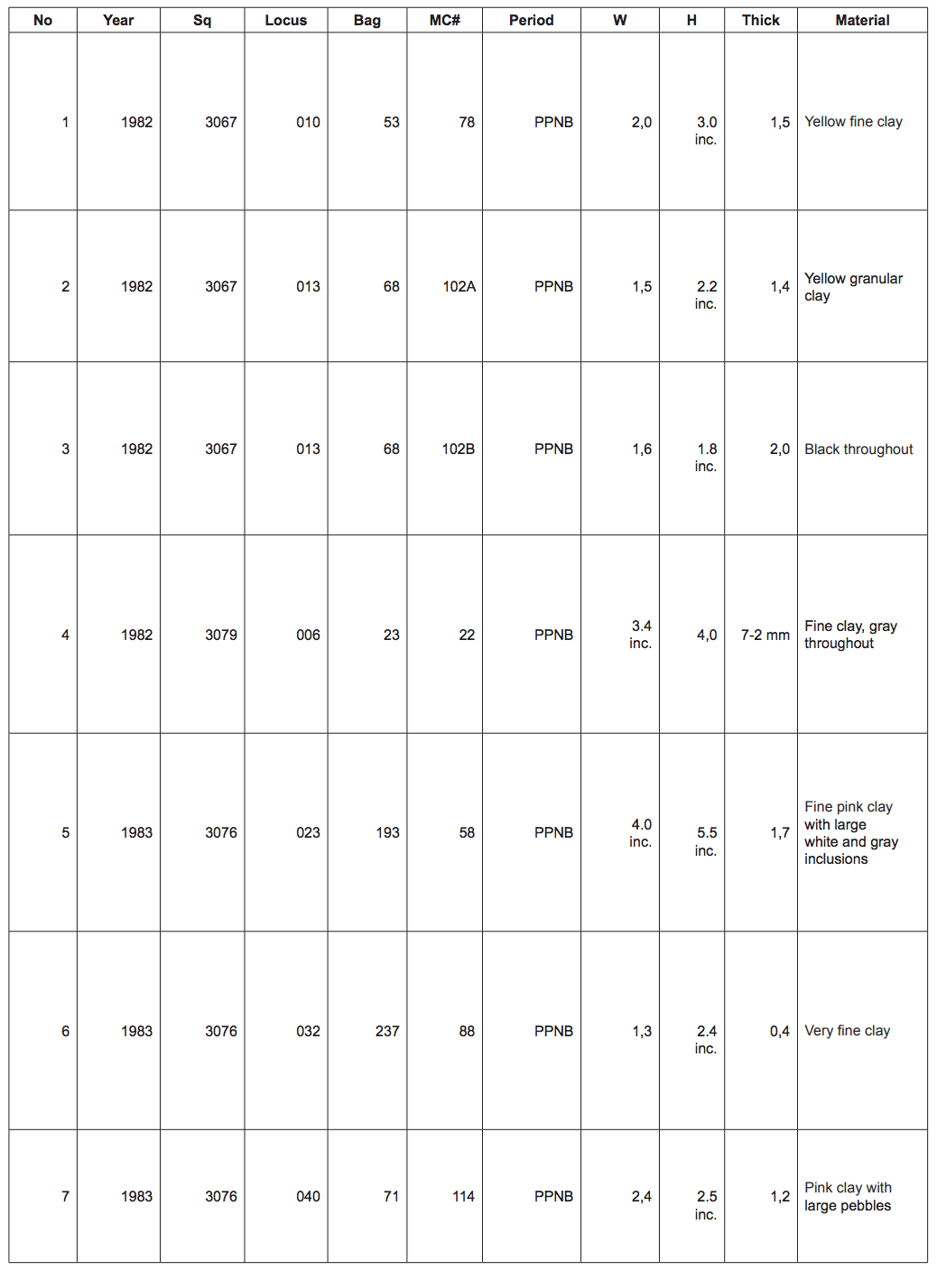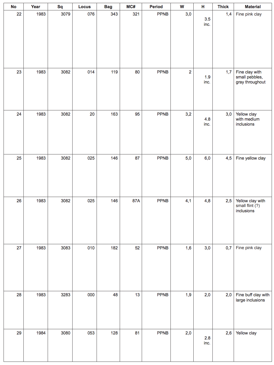 Simmons 1989: 15-16, Table 8; 1991: 103) - 3 in the 1989 season (Kafafi, Rollefson and Simmons 1990: 21, 25, Pl. II)