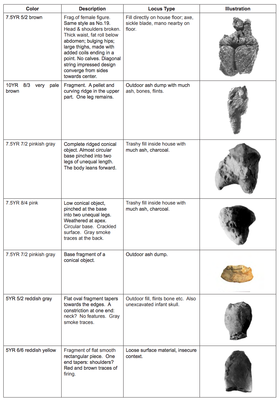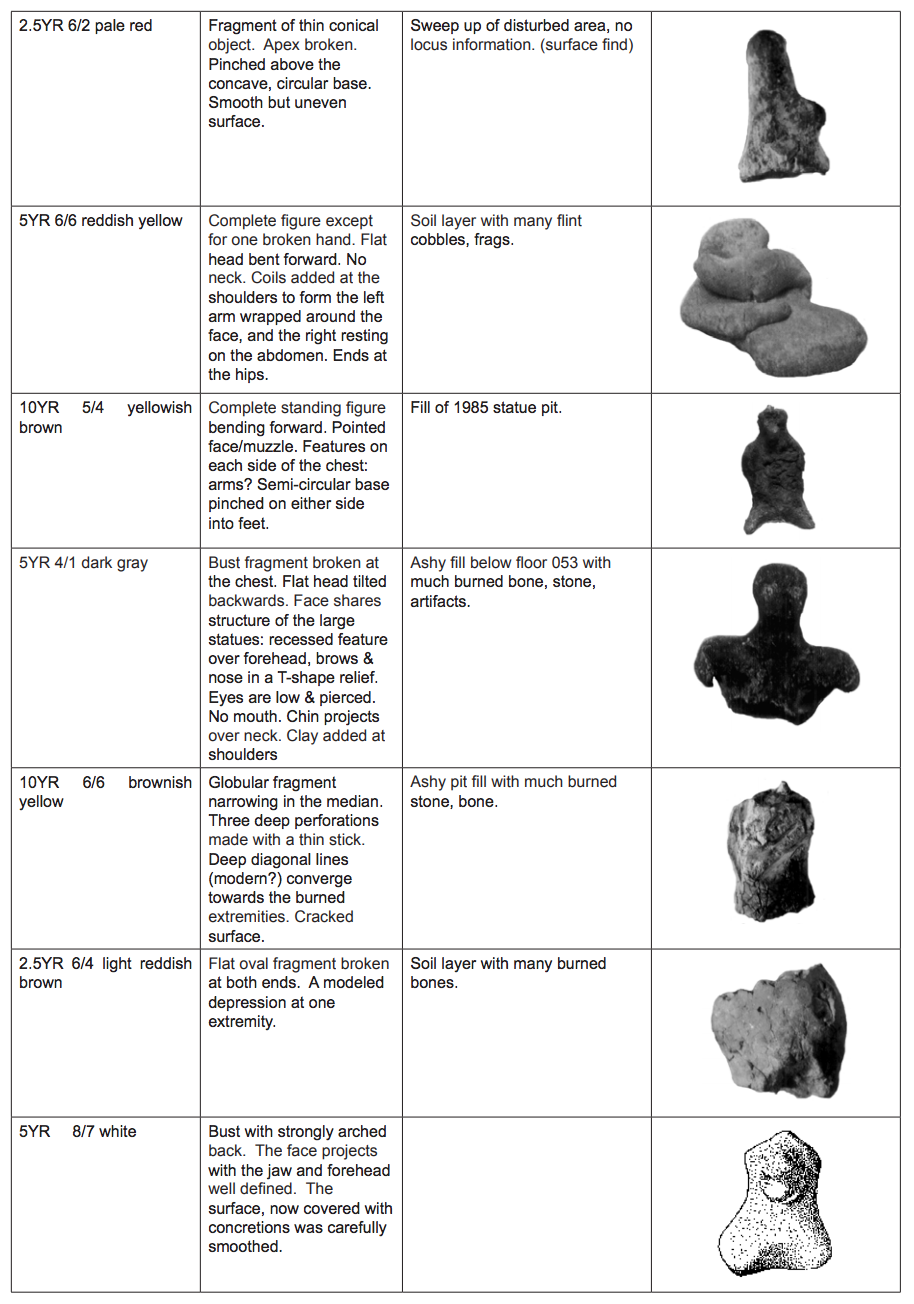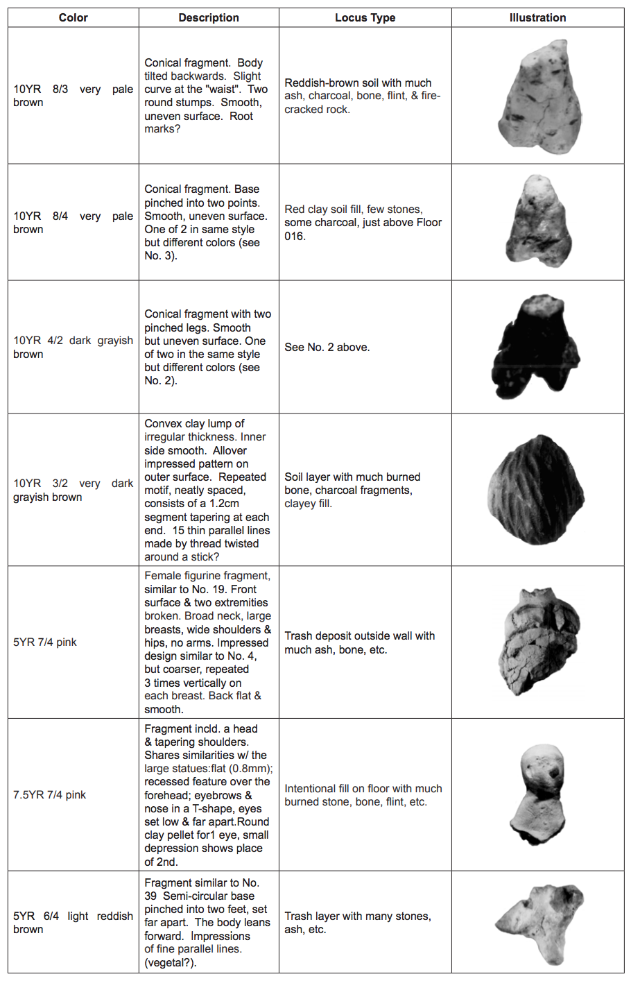It is noteworthy that the figurines tend to be found in clusters of identical material, color, paste, and types/ density of inclusions. For example: