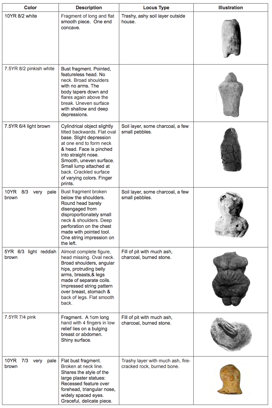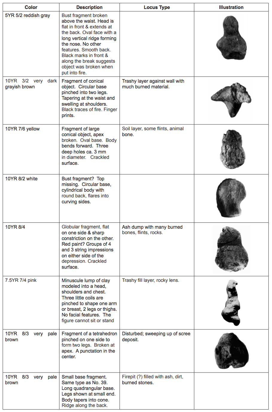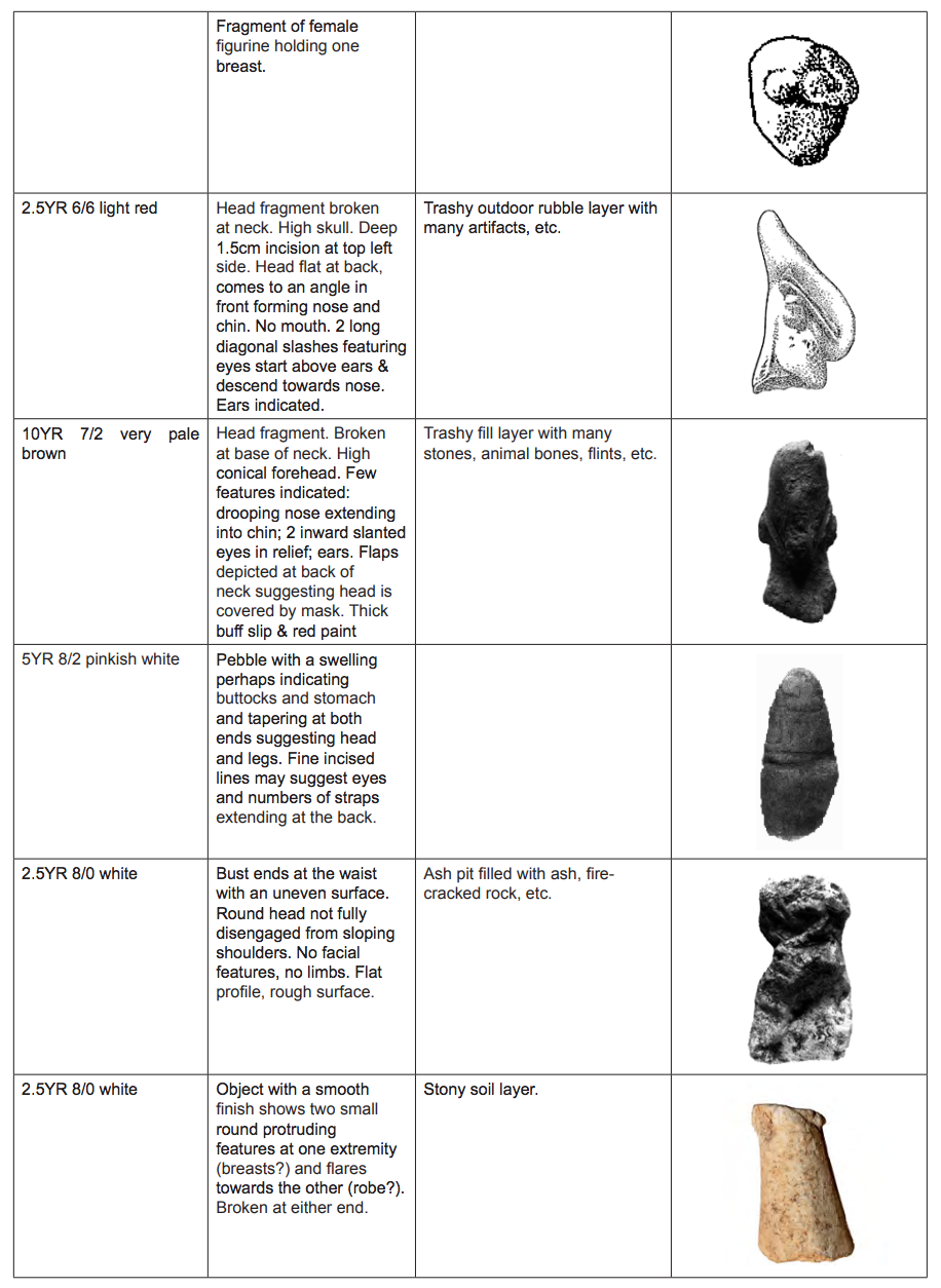It is noteworthy that the figurines tend to be found in clusters of identical material, color, paste, and types/ density of inclusions. For example: