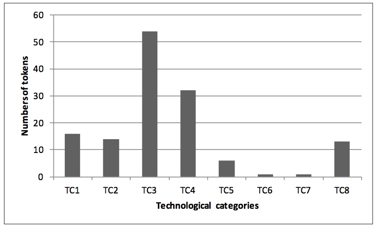 Figure 2.1.6 shows the relative proportions of these technological categories (TCs) present in the assemblage: