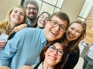 The Dunsmoor Lab at the Society of Biological Psychiatry’s 2024 annual meeting. Patrick, Lingwei, and Sydney presented posters on their work in the lab and Joey gave a talk sharing the results of one of our neuroimaging studies in clinical populations. Great work everyone!