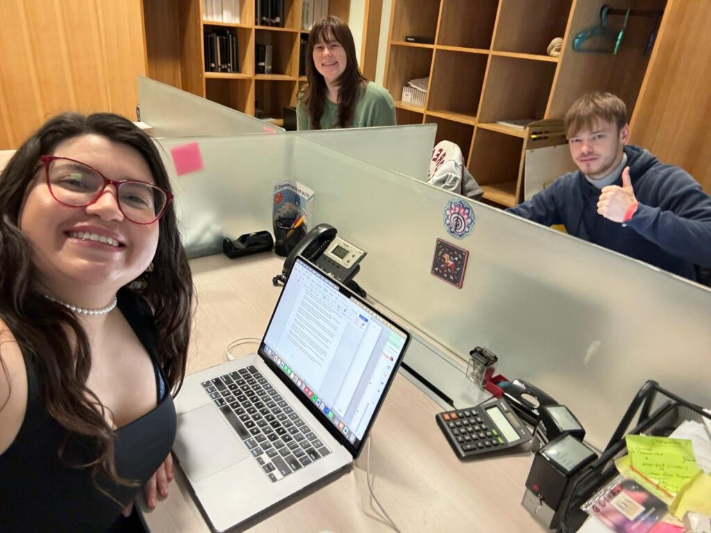 Me with my fellow interns Taylor Crownover from UT and Gregoire from France in our office at International IDEA in Chile.