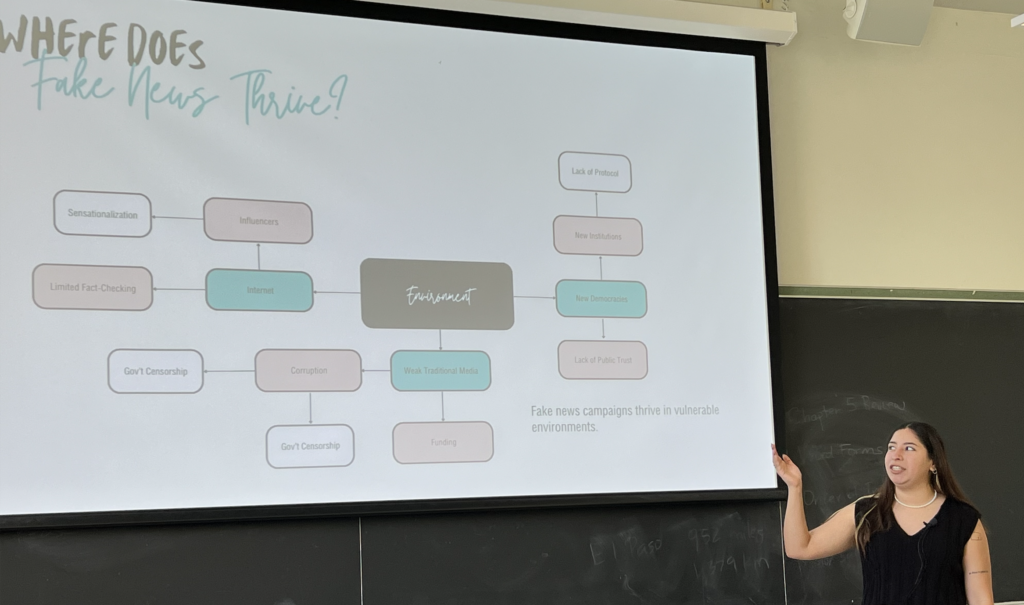 In their internship class this spring, the 2024 Embedded Scholars conducted research on key challenges facing democracies today. Their research assessed current findings on these challenges globally and the sociopolitical, legal, and constitutional dynamics shaping these issues in Latin America. Today, students presented their research on disinformation in elections and democratic disaffection and backsliding.