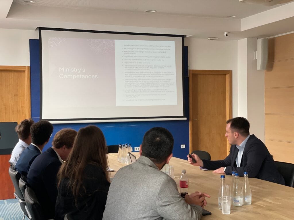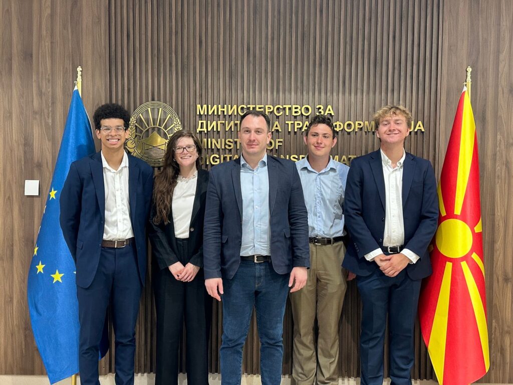 The Embedded Scholars team interning at the National Democratic Institute in North Macedonia met with the Minister of Digital Transformation this week as part of their research on anticorruption efforts in the country. The Ministry’s facebook post on the meeting noted that “We had an honest and constructive discussion on a number of important topics. Meetings like these are a great opportunity to exchange experiences and build bridges with future leaders and researchers from around the world.”