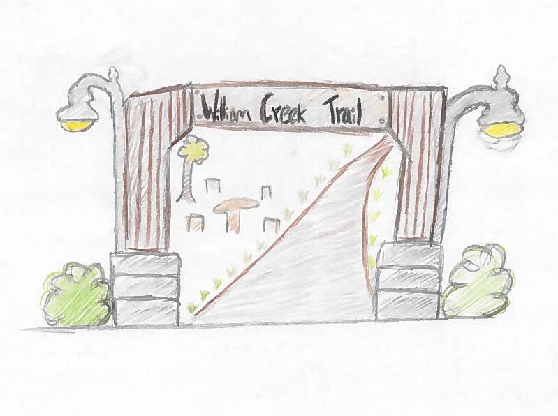 The entrance design process involved the youth and residents conceptualizing welcome signs for the park. In a community workshop, residents discussed and selected the elements that should go into the entrance design. The next steps include evaluating the feasibility and permitting restrictions of the entrance sign that is ultimately selected.