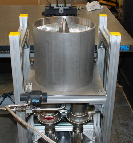 The supersonic reacting jet was designed to study the effects of vibrational energy exchange in supersonic mixing and combustion. The jet is Mach 1.5 and issues into a slow co-flow of heated air. The jet is non-reacting when operated with nitrogen or air, and it combusts when operated with hydrogen fuel in the jet stream.