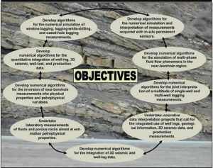 The joint industry research consortium on formation evaluation aims at developing and testing novel methodologies for the integrated interpretation of well logs, rock-core measurements, and seismic amplitude data. Emphasis is placed on the petrophysical interpretation of measurements to detect, diagnose, and quantify rock properties and geometrical variables that control the storage and production of hydrocarbon reserves. Interpretation of borehole geophysical measurements also includes pore-scale petrophysical models to assess the influence of partial hydrocarbon saturation on gradient diffusion measurements of magnetic resonance, wideband dielectrics, and multi-phase immiscible flow. To accomplish these goals, the research consortium develops efficient and accurate algorithms for the numerical simulation of multi-phase and compositional flow in the near-wellbore region. In addition, efficient and accurate algorithms are developed for the numerical simulation of borehole electromagnetic, sonic, nuclear, and formation testing measurements acquired in vertical, horizontal, and deviated wells in the presence of both water- and oil-base muds. A significant component of the consortium research includes the development of efficient inversion algorithms to jointly interpret one or more borehole geophysical measurements into petrophysical properties and space-time distributions of fluids in the near-borehole region This is achieved with sophisticated multi-physics and multi-scale minimization algorithms that are capable of delivering estimates of non-uniqueness and uncertainty. Many of the algorithms developed by the consortium are implemented on stand-alone PCs and parallel computers using Fortran, C++, and Matlab© programming languages.