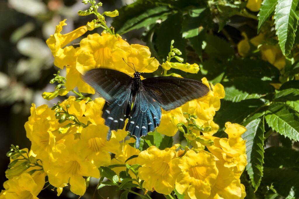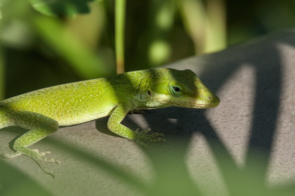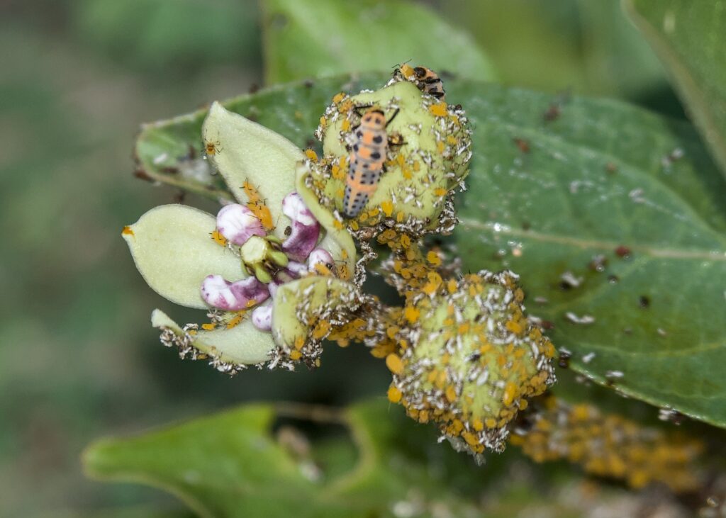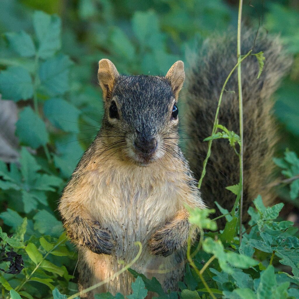 October 8, 2025, Filed Under: Nature WalksWaller Creek: die Verbindung von Uni und Stadt Ein Bach fließt durch das Campus. OK gut, vielleicht ist “fließen” nicht das passende Verb. Wie wär’s mit “tröpfeln“? Mitten in einer Trockenheit wie jetzt läuft das Wasser äußerst langsam. Aber Hauptsache, es gibt Wasser und Bäume wie Zedern, Weiden, Eichen und Eschen-Ahornen sahen am vergangenen Sonntag sehr dankbar dafür aus. Und wir waren es auch für ihren Schatten. Im Oktober werden die Schmetterlinge zum letzten Mal sehr aktiv. Wir haben eine Anzahl dieser Tagfalter gesehen. Vom großen, bunten Monarch bis zum kleinen, braunen Dickkopffalter Lerema accius suchten sie alle Nektar bei den spätblühenden Blumen. Wie viele Schmetterlinge könnt ihr im Oktober finden? Wie viele verschiedene Arten? Hinter der Fakultät für Ingenieurwissenschaften versteckt eine interessante Überraschung: ein kleines Forschungsprojekt. Die Fakultät arbeitet zusammen mit dem Lady Bird Johnson Wildflower Center (auch Teil der Universität) um mehr über die heimischen Pflanzen zu erfahren, die am besten in dem Flussgebiet entlang des Waller Creek wachsen. Da haben wir eine kleine Seidenpflanze gesehen. Sie hatte nur eine kleine Blume. Darauf haben wir winzig kleine, orange Blattläuse gesehen. Dabei waren auch Marienkäferlarven. Die Läuse sind eigentlich schädlich für die Pflanze aber die Käfer fressen die Läuse und so helfen ihr. Wir waren auch nicht die einzigen Beobachter am Bach. Zahlreiche Vögel wie die Grackeln und Gartenspottdrosseln haben uns im Auge behalten. Auch ein neugieriges und hungriges Eichhörnchen wollte wissen, was wir vorhatten. Der arme Rotkehlanolis war zu müde und ging schnell weg.