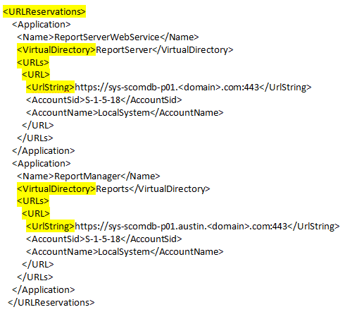I was setting up SSRS for use with SCOM 2012 and trying to configure reporting Services to use SSL with the actual server name and a more user friendly alias. We have a naming standard for our servers that includes department, service, and production state. This results in some user-unfriendly names (such as sys-scomdb-p01) so we end up adding an alias in DNS and adding a Subject Alternate Name to the certificate.