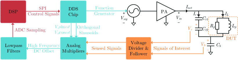 Accurate loss data is necessary for effective magnetic component design and evaluation – both of complete components and of core materials. While automated systems are available for core loss characterization at sub-MHz frequencies, only labor-intensive resonance-based measuring methods are available at higher frequencies. These typically rely on users to extract features from distorted waveforms and tune for resonance. An integrated automated measurement system is proposed to eliminate dependence on external measurement equipment (such as oscilloscopes) and manual tuning, thus measuring core loss or component loss in MHz magnetic components within seconds. The system uses high-frequency conditioning circuits to extract the magnitude and phase information of signals of interest without high-speed ADCs, FFT computations, or external measurement equipment. An embedded microcontroller executes real-time algorithms to reach resonant points and collects core-loss-related data. The automatic test results on MHz magnetic materials align with datasheets and expand the core loss characterization range, thus verifying the feasibility and effectiveness of the proposed system.