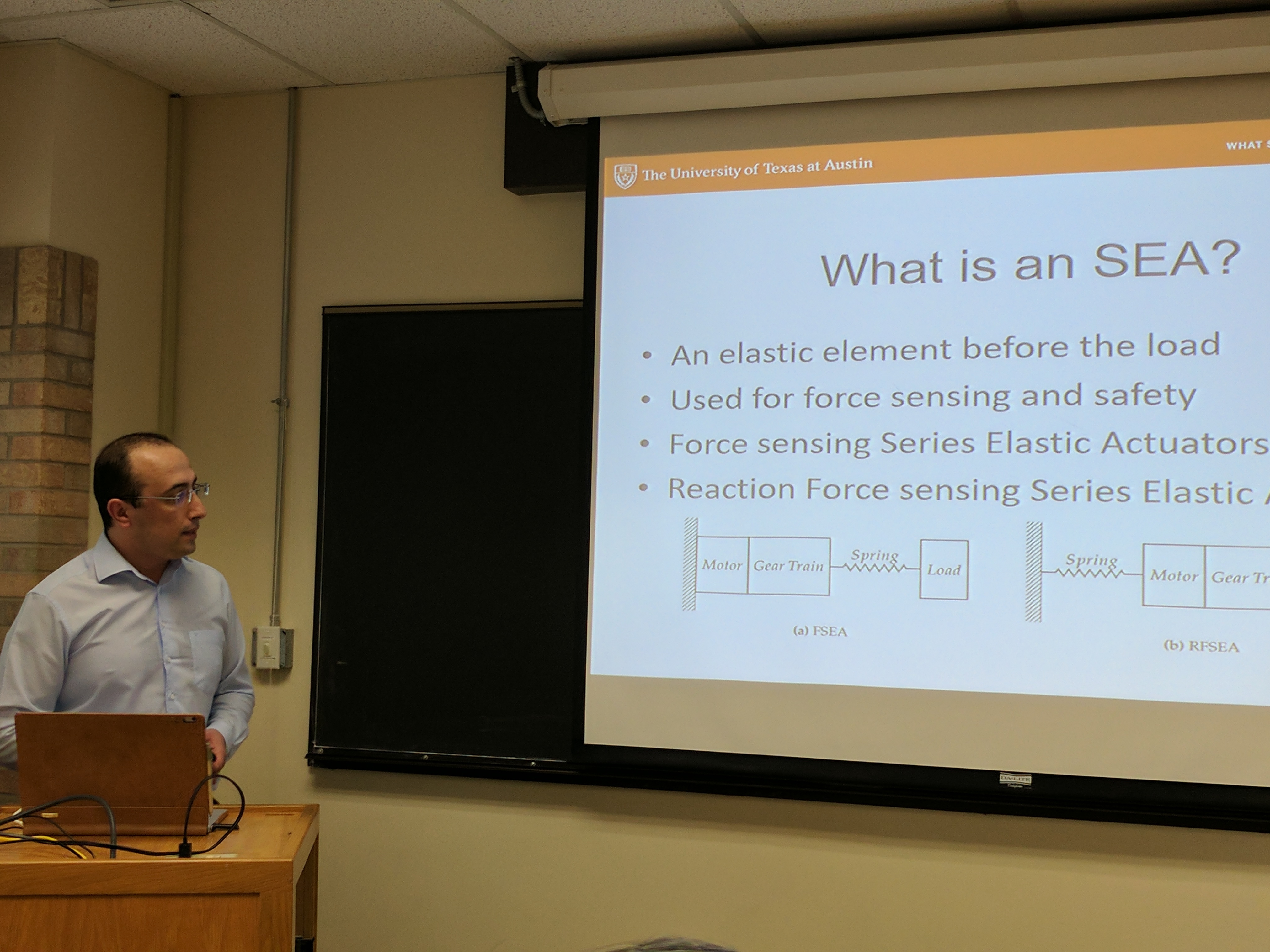 Abstract: Uncertainty permeates in all control approaches and significantly complicates controller design. This is specially true for human-centered robots which rely on oversimplications such as ignoring high-frequency behaviors or realtime delays to central computers. In this talk Luis will join forces with HCRL students Gray and Donghyun to present detailed mathematical work on choosing structure for measuring uncertainty in a meaningful statistical sense, motivate the nature of uncertainty in hardware systems involving high performance series elastic actuators, and devise a planning and control framework that embraces uncertainty to external disturbances via reinforcement learning of locomotion responses.