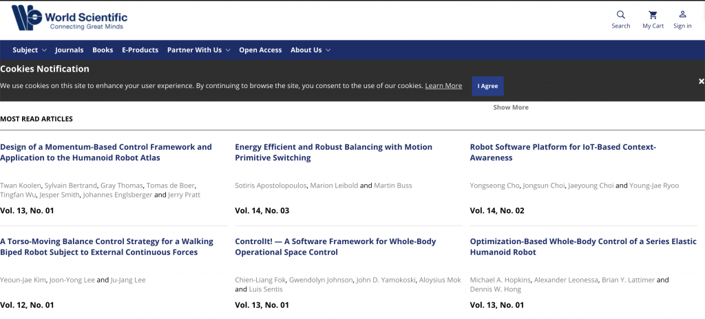 We’re delighted to share that our 2016 paper ControlIt!, is the 5th Most Read paper on IJHR and our 2005 and 2004 IJHR papers on Whole-Body Control are the 3rd and 4th Most Cited papers of IJHR!
