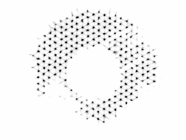 Despite nearly a month of heavy smoke, fog, rain and hail we have completed our tests with the Deployable Wave Front Sensors (DWFS) on the Focal Plane Assembly (FPA). In these tests we were putting geostationary satellites on the various DWFS units across the FPA. While the final report on the image quality of the Corrector optics are still pending we do know that the image quality is good enough to move on to the next stage of commissioning. We will likely leave the central DWFS unit in place to allow us to check and re-optimize the image quality as we make further changes to the mount model. Below is an image of what a single bright star looks like through the DWFS unit. You can see that the light is broken up into small sub-aperatures (not each mirror) and then the distribution of those spots, ie. how evenly they are spaced, can tell you about the deformations of the optical system. The Corrector is the area in the center without the spots. The tracker rails run from 2 o’clock to 8 o’clock where the lower X work platform is still installed.