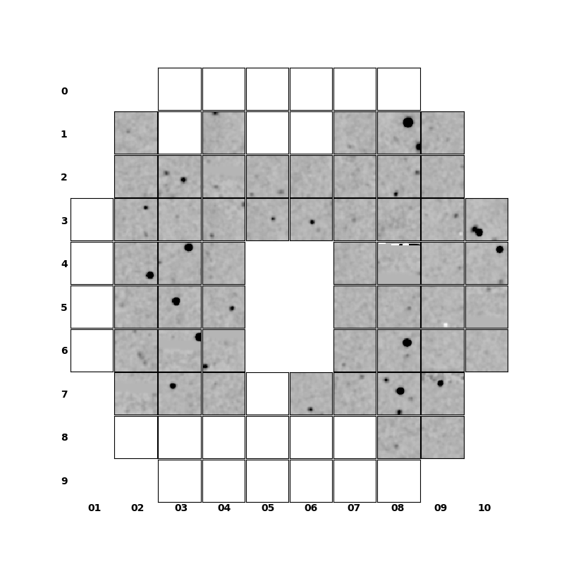 The VIRUS units (grey squares) do not actually touch each other, but are shown doubled in size to fill in the gaps between them, graphically.