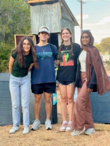 Team Biodigester Fall 2025 – Current Fall 2025 Biodigester Team: Jenessa, Brady, Shayla and Alisa In order for anaerobic digestion to occur, the temperature of the vessel that holds the waste should fall within the optimal range for the bacteria doing the digesting. For anaerobic bacteria, this range is dubbed the “mesophilic range” and is around 30-40º C (Figure 2). Our group aimed for a range of 35-38ºC to target the most efficient conditions. Many commercial biodigesters use external heat sources, such as burning fuel or photovoltaics, to maintain the temperature within the optimal range, but those solutions are not always a possible application in areas with limited resources such as Cox’s Bazar. William Carter, senior officer at the International Federation of Red Cross and Red Crescent Societies (IFRC), suggested that this project design a cost and space-efficient method to achieve the optimal operating conditions for a Flexigester®, a commercial flexible biodigester utilized in Cox’s Bazar, and has provided guidance to the team throughout the semester. Project Description: Refugee camps around the world face numerous health issues due to the challenges of waste management. To face these challenges, the biodigester was developed to decompose waste using anaerobic bacteria. In order to accelerate the process, our system uses solar collectors, made of polyethylene pipes coiled onto a zinc backing, to heat water inside the biodigesters to a temperature range of 35-40 degrees Celsius. The goal of our project is to ensure that the temperature inside of the biodigester remains in this range for as long as possible to maximize waste digestion. Eric, Faith, Anita, Sneha, and Alessandro working at Brackenridge Field Laboratory Student Experiences: “This class is super unique and fun since everything is really hands on and interactive! ” -Sneha Sundar “I like that I can work on a project that can have real world impact ” -Anita Mishra “I get to apply a lot of the things I learn in some of my classes” -Eric Williams “I really enjoy that we get to work with the same group for a long period of time” -Alessandro Supriyatno Prototyping: Faith, Alessandro and Sneha setting up their new solar panel Members of Team Biodigester pose after setting up their first test of the semester Prototypes and Schematics: Data Collection: “This class is a great chance to bring together everything you’ve learned in your engineering courses and make something impactful.,” – Eva Patel “Seeing something that we’ve made work and be successful has been really rewarding!,” – Lindsey Nguyen “It was my favorite class this semester. I gained a lot of hands-on experience and learned a lot about what industry is like.,” – Faith Leake Student Caitlyn Harris working on building the new solar collector prototype. Experimental system setup showing the control trash can (left), the solar collector prototype (back) oriented at optimal angle, system trash can (right) simulating a biodigester, and the Arduino system (middle) equipped with temperature sensors measuring temperature change. Graph representing proof of concept by plotting temperature data in Celsius over time of our system (blue), control (red), along with the ambient temperature (yellow). This displays our system maintaining the required temperature range of 30 to 40 degrees Celsius for six hours.