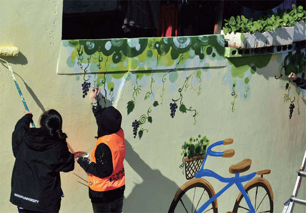 Source: The wall was transformed into a vibrant mural village through the hands of the students.