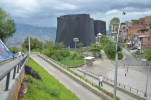 Due to a history of state neglect, the Medellín comunas had long been controlled by armed non-state actors that had taken over core functions of the city (Büscher, 2012). Quinchía (2013: 126) argues that the Medellín Model reproduces a discourse of control to support state power domination in informal areas, exemplified by the ways in which the built environment is reorganized to facilitate police surveillance. As Rankin (2009) argues, planning practice is the vehicle by which the logic of capitalist accumulation travels into the “non-capitalist periphery”. The Medellín Model reproduces not only the aesthetics of formality but also the ways in which residents relate to visitors, what stores and libraries to frequent, and which viewpoints (miradors) to visit to admire the landscape. In the same vein, Watson (2009) sees a ‘conflict of rationalities’ where informality constitutes zones of resistance where the poor exercise power. The Medellín Model, however, in fact, serves to dilute such informal spaces of their power.